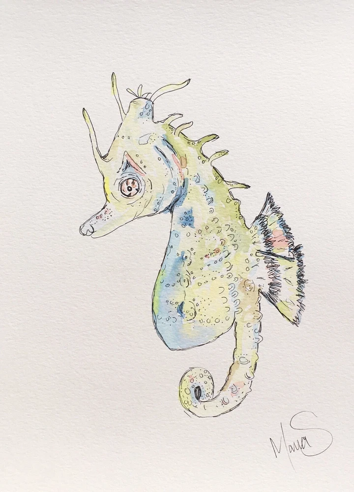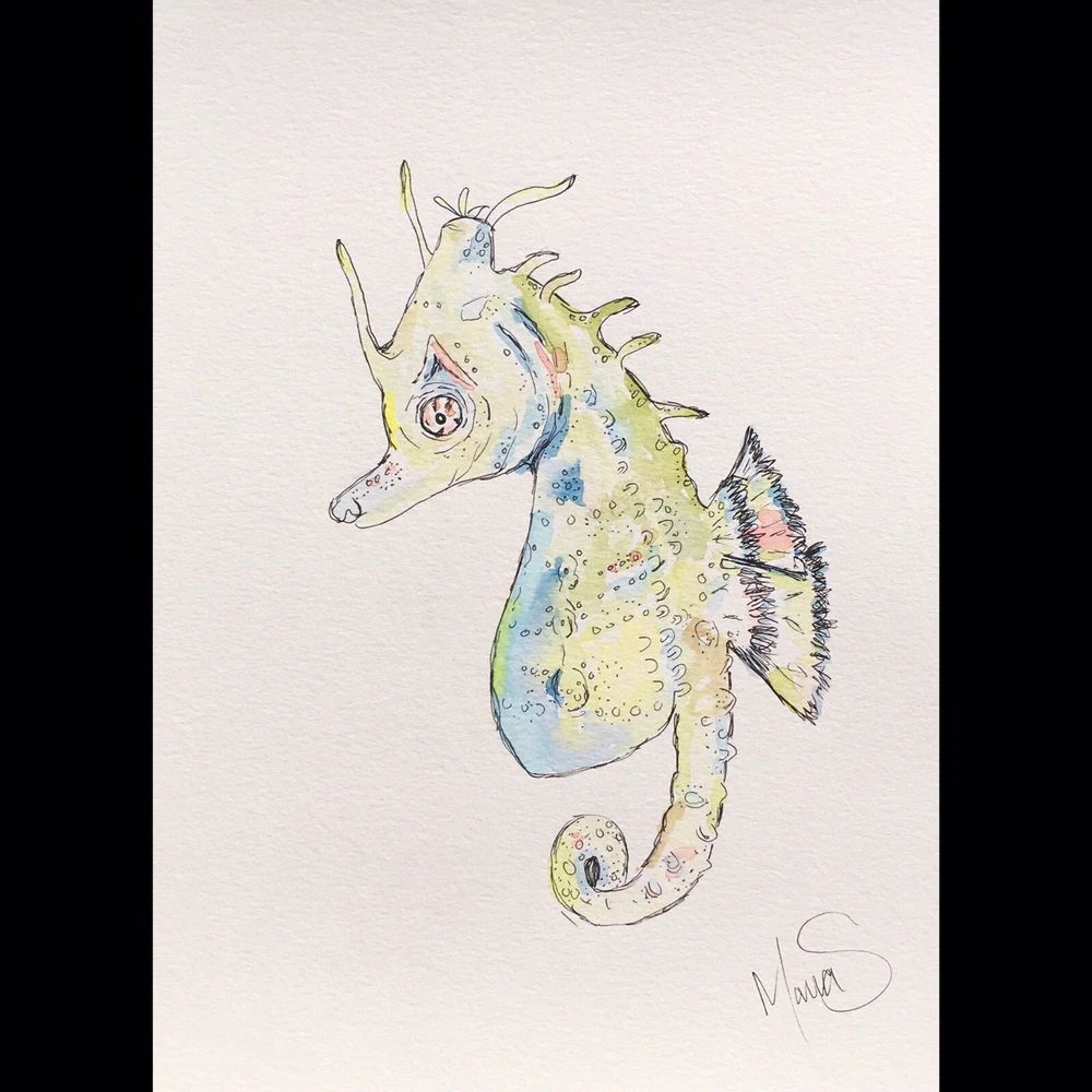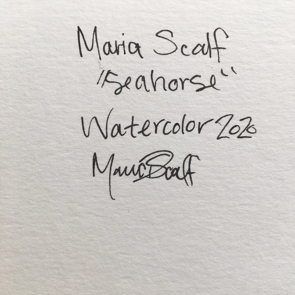 This is your chance to own a one of a kind SIGNED ORIGINAL painting from a contemporary artist. This is NOT a print, this is an original painting. DETAILS: Artist: Maria Scalf Title: Seahorse Size: 9x12 Media: Watercolor on Paper. Cold Press 140lb 300g paper. Note: All water color paintings will come without a frame and will need to be framed before hanging. Artist Info: Husband and wife, Matt and Maria Scalf are contemporary artists who live in the foothills of the Blue Ridge Mountains of North Carolina.. Item:487/A459 Fast Shipping All orders will ship within 1 business day. Monday-Friday (Except Holidays) Please check out our other art! Check out our website.