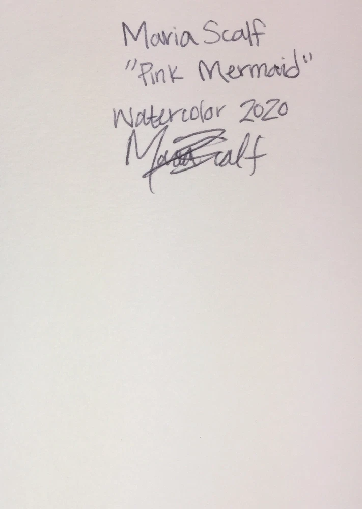 This is your chance to own a one of a kind SIGNED ORIGINAL painting from a contemporary artist. This is NOT a print, this is an original painting. DETAILS: Artist: Maria Scalf Title: pink Mermaid Size: 9x12 Media: Watercolor on Paper. Cold Press 140lb 300g paper. Note: All water color paintings will come without a frame and will need to be framed before hanging. Artist Info: Husband and wife, Matt and Maria Scalf are contemporary artists who live in the foothills of the Blue Ridge Mountains of North Carolina.. Item:141 Fast Shipping All orders will ship within 1 business day. Monday-Friday (Except Holidays) Please check out our other art! Check out our website.