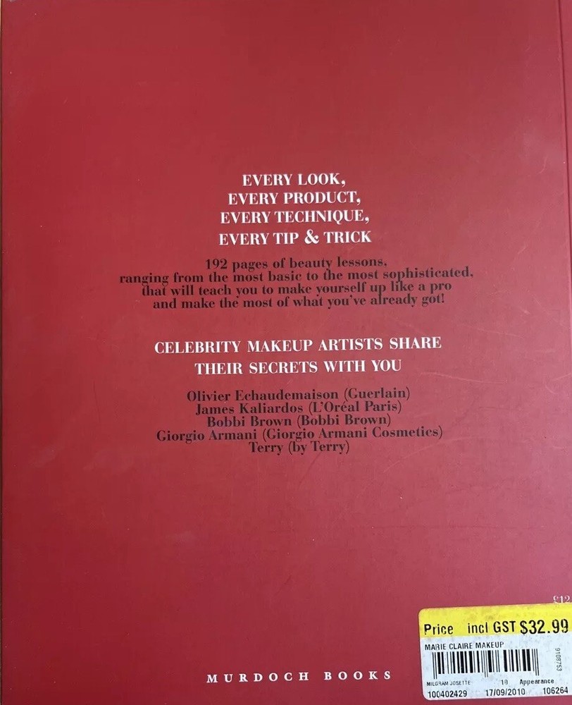 Publication Year: 2007 Item Height: 254mm Number of Pages: 192 Pages Narrative Type: Non-Fiction Original Language: English gtin13: Does not apply UPC: Does not apply Topic: Beauty, Makeup, Skin Type: Activity Book Publisher: Murdoch Books Book Title: Marie Claire Makeup Format: Paperback Language: English Intended Audience: Adults, Young Adults Genre: Art & Culture, Imagery, Leisure, Hobbies & Lifestyle Country/Region of Manufacture: Australia Author: Josette Milgram Item Width: 207mm