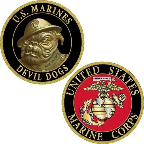 Marine Corps Challenge Coin DEVIL DOGS U.S. MARINES 1 5/8" 42mm USMC United States Marine Corps Challenge Coin Officially USMC Licensed "DEVIL DOGS" Condition : New Size : 42mm 1 5/8" What is a challenge coin? A challenge coin is a small coin or medallion (usually military), bearing an organizations insignia or emblem and carried by the organization's members. Traditionally, they are given to prove membership when challenged and to enhance morale. In addition, they are also collected by service members. In practice, challenge coins are normally presented by unit commanders in recognition of special achievement by a member of the unit. The CEO of Survivors Edge received his first challenge coin while serving in the United States Marine Corps back in the early 80's. Now he carries one every received from his wife, a fireman's coin. Whether in his turnout gear for fires, or station gear for medical calls, it's in his left front pocket. It reminds him of the love, care and honor his wife has for him, as well as prayers for his safe return. It's just a coin with no magical powers. But give one to someone you love, and it too will bring comfort in tough times. Looking for an armed forces or Marine Corps logo item? Make sure you drop us a note. We're adding new items all the time. By the way, all of us at Survivors Edge are Marines. This collector's coin is perfect for your Marine or other branches of the military family member. "One of my favorite challenge coins was passed around and prayed over before giving it to me. Imagine that. Everyone there held it in their hand and said a prayer for me. You know I still have that one." "Today, we understand that peace through strength is more than a slogan. In a world such as ours, it's a moral necessity, and in the tough job of preserving the peace and defending our nation's independence and freedom, the U.S. Marines have always been there, ready to do their duty." Former President Ronald Reagan Shop us at SurvivorsEdge and PatchesAndStickers . SurvivorsEdg e is a Service-Disabled Veteran-Owned Small Business (SDVOSB) specializing in United States Marine Corps gear, survival gear, karambit and zytel polymer knives, Arkansas sharpening stones, and cigar and tobacco pipes and accessories. Visit us on these sites for specials and coupons!