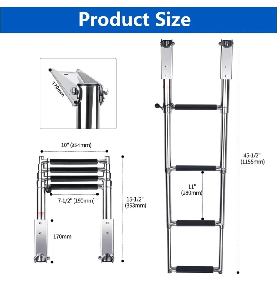 Marinebaby Heavy Duty Boat Telescopic 4 Step Ladder,Stainless Steel Swim Platform Telescoping Ladder,Extendable Step for Boat Yacht. Missing screws