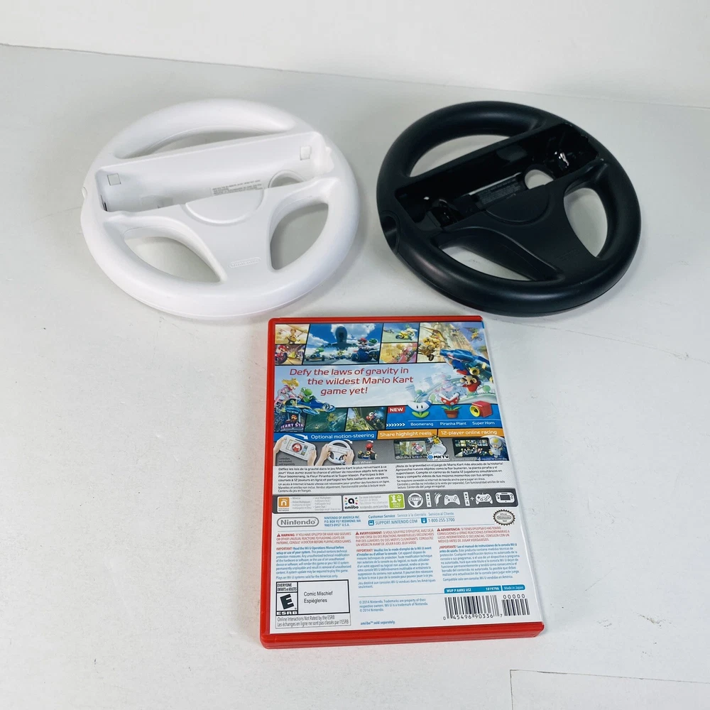 Absolutely love this Mario Kart 8 bundle! The game works flawlessly, even with minor scuffs, and the wheels add so much fun. The case and inserts are in great shape, just some light wear. Perfect for family races—tested and ready to play! Worth every penny for the complete set.