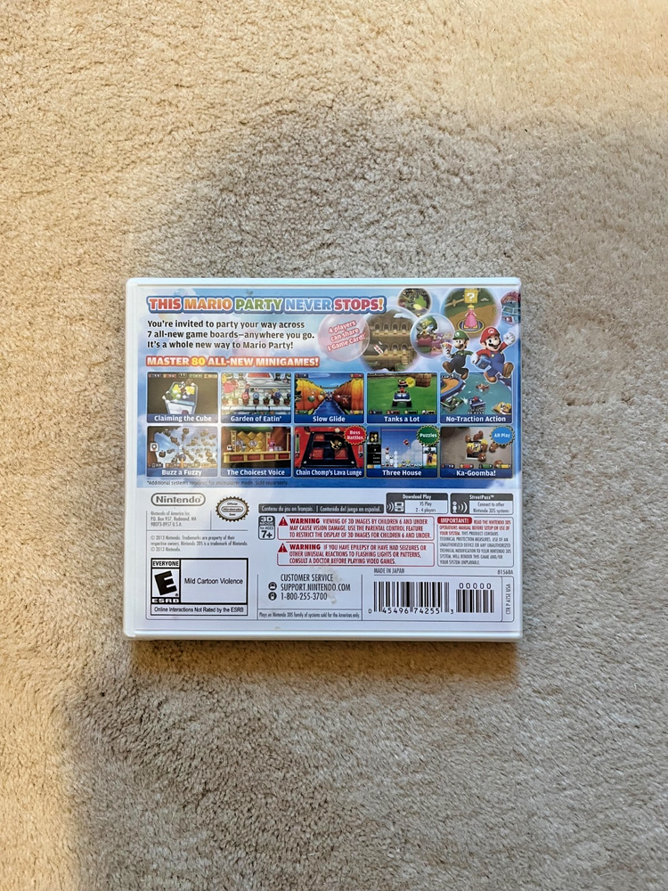 The product is a brand new, sealed copy of Mario Party: Island Tour for Nintendo 3DS, released in 2013. This game, part of the popular Mario Party series, offers multiplayer gameplay and falls under the genres of action/adventure and action & adventure. Published by Nintendo and rated E for Everyone, it promises an exciting gaming experience for fans of the franchise. With its charming gameplay and competitive multiplayer modes, Mario Party: Island Tour is sure to provide hours of entertainment for players of all ages.