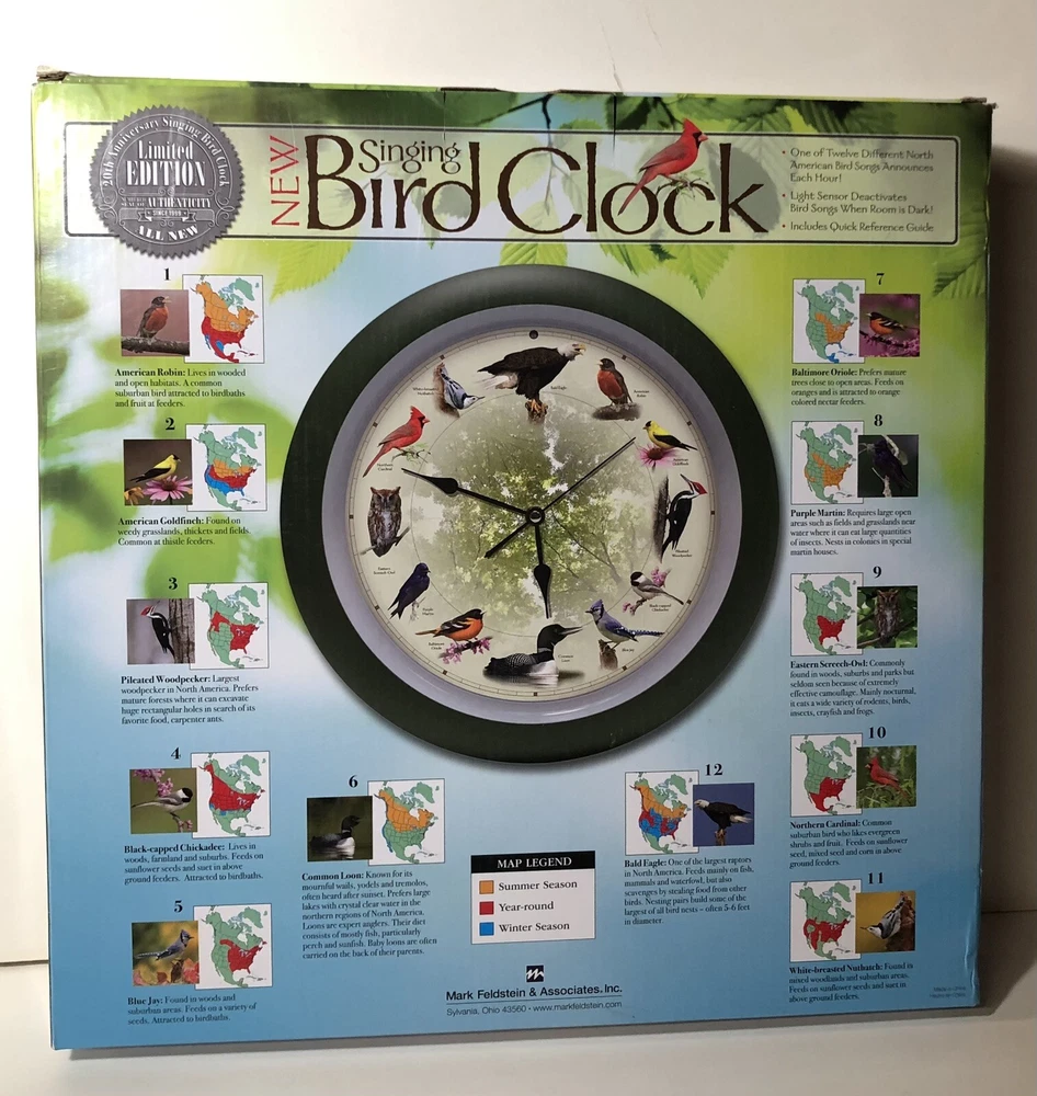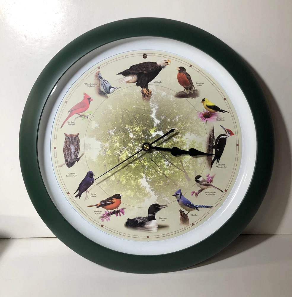 Mark Feldstein Limited Edition 20th Anniversary Singing Bird Wall Clock 13 Inch in Matte Green NEW OPEN BOX ITEM - CLOCK HAS BEEN TESTED AND SOUNDS GREAT! SEE VIDEO Requires 3 AA batteries (not included)