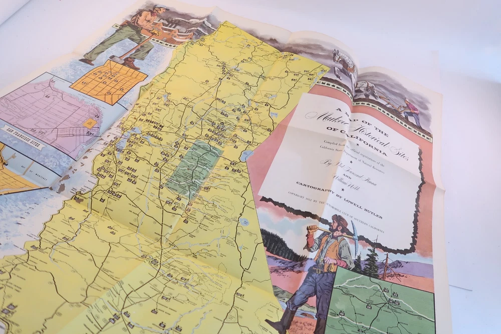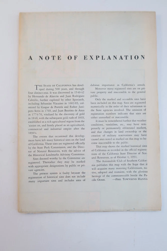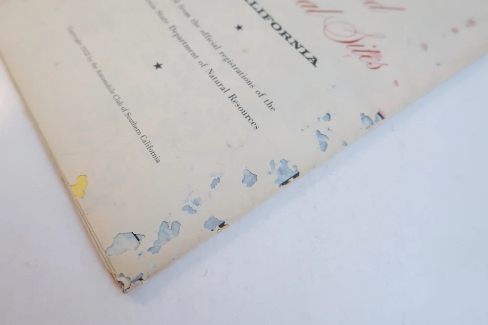 Hello and Welcome! This listing is for: Marked Historical Sites of California 1952 Automobile Club Travel Souvenir Map. Condition: Overall this item is in fair condition. There is some wear to the item on the front cover, there are a few small holes on the front cover, please see photos. When you unfold the map the rest is in good overall condition. Shipping: Your item will be well packaged for maximum protection during transit. Terms of Sale: This item will ship out within 1 business day of payment completed. Contact Us: Should you have any questions please do not hesitate to write and ask us. 5 Star Service: We also strive to maintain our 5 star service, should you have any issues with this item please write us first and we will work out the issue immediately.