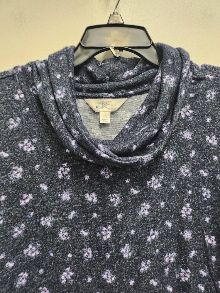 Market & Spruce Stitch Fix Top Women Large Blue Floral Soft Knit Cowl Neck Tunic Features: Lightweight, Soft Knit, Stretch, Breathable, Long sleeve, Pullover, cowl neck, Allover print, Stretch, Casual, Travel, Comfy Style profile: Classic, Staple Condition: Pre-Owned in Excellent Condition Measurements: Pit To Pit: 21 in Length: 29 in We want you to have a positive experience. Please examine the pictures carefully before purchasing! Thank You!