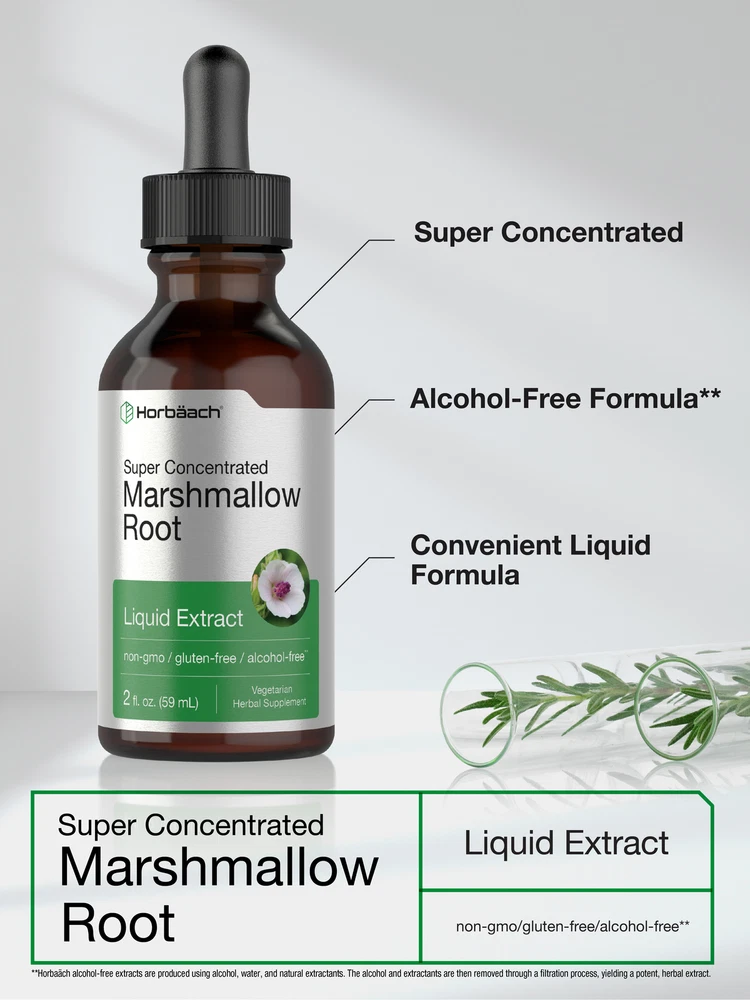What is Marshmallow Root? Marshmallow (Althea officinalis) is a traditional herb cultivated from the sandy shores of rivers and marshes. It originates from specific regions of Europe and has become a staple plant worldwide. The fibrous roots of marshmallow contain a special sap-like mucilage, with naturally occurring antioxidants and other beneficial plant compounds. How to Get Marshmallow Root: There are many ways to add this traditional herb to your daily routine including capsules, pills, powder, liquid drops, and tinctures. Tinctures provide exceptional purity and potency and are easy to take daily. Looking for the best source of Marshmallow for your herb collection? Horbaach Marshmallow Root: Our vegetarian Marshmallow Root supplement provides a super concentrated source of this abundant root in one alcohol-free liquid extract. It’s gluten-free, non-GMO and lab-tested to ensure the extraordinary quality you need to live Horbaach Healthy! WARNING: Not intended for use by pregnant or nursing women. If you are taking any medications, planning any medical or surgical procedure or have any medical condition, consult your doctor before use. If any adverse reactions occur, immediately stop using this product and consult your doctor. Not intended for use by persons under the age of 18. If outer seal is damaged or missing, do not use. Keep out of reach of children. Store at room temperature. Avoid excessive heat. Shake well before using.