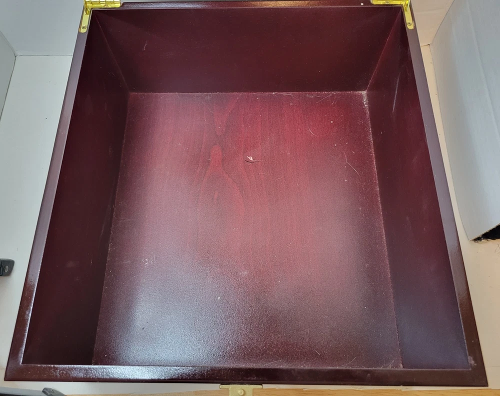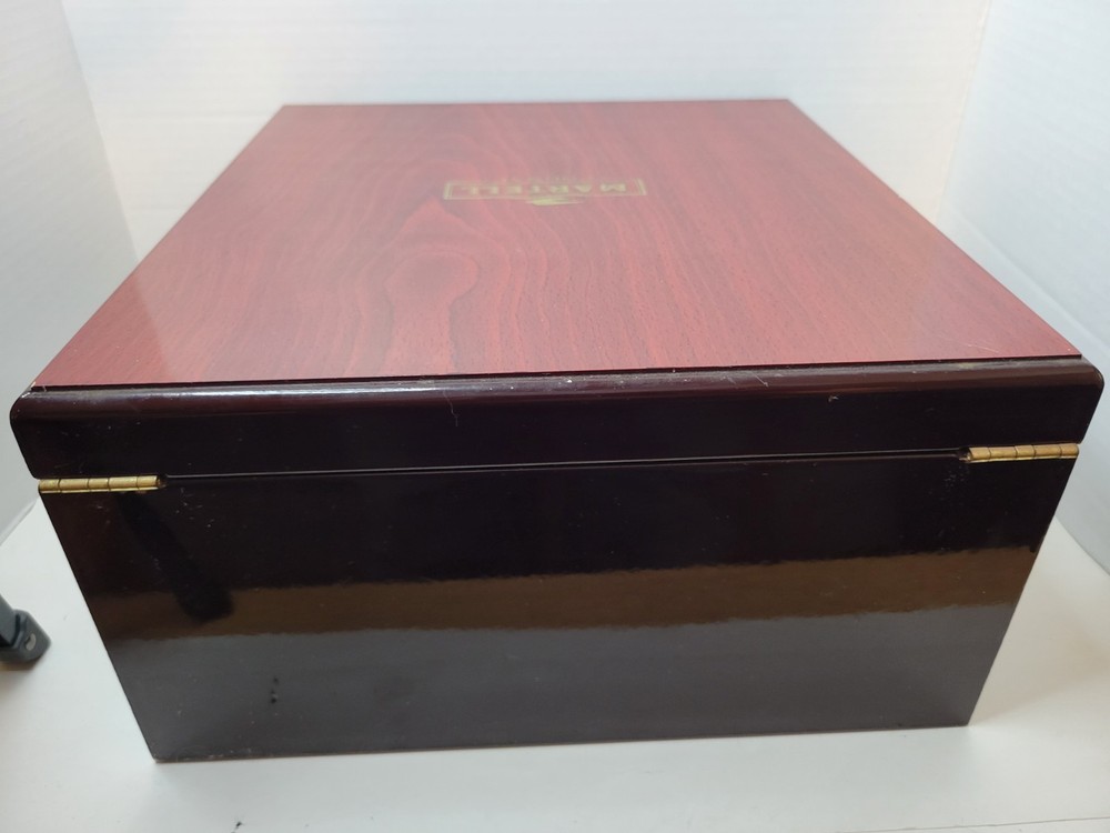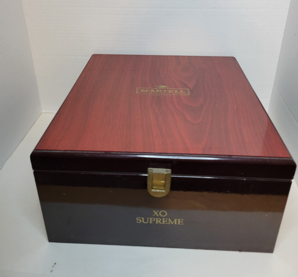 Supreme XO Cognac Box by Martell Very beautiful wood box made in Taiwan. Very sturdy and beautiful color. There are some light knicks and scratches here and there but nothing to serious. You can probably get a wood marker and match the color. I'm just selling it as is. Hinges and latch work perfect. 11" 3/4 Long- 11" Width- 6" Height Disclaimer: I ship Monday through Thursday only. Friday and Saturday sales will be shipped Monday, if Monday is a holiday, item will be shipped out Tuesday. All of my items come from a smoke free and pet free environment. If there are any flaws that I notice, or any flaws that you may have noticed in any of my postings and ads, please feel free to let me know! I try to respond within 24 hours. I do not accept returns, however if there is a issue an item that you purchase from me, please let me know before leaving negative feedback and we can work something out. Thank you and happy shopping!