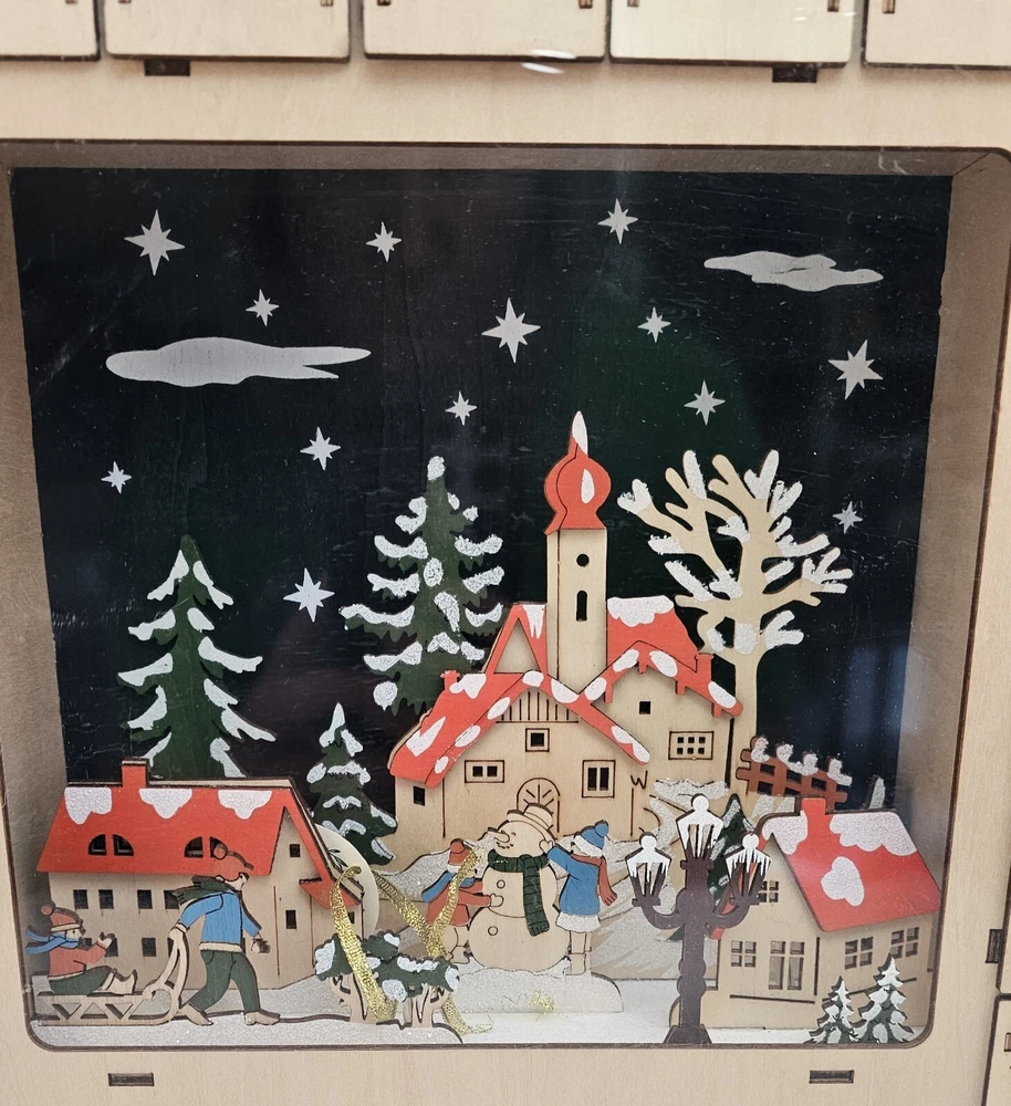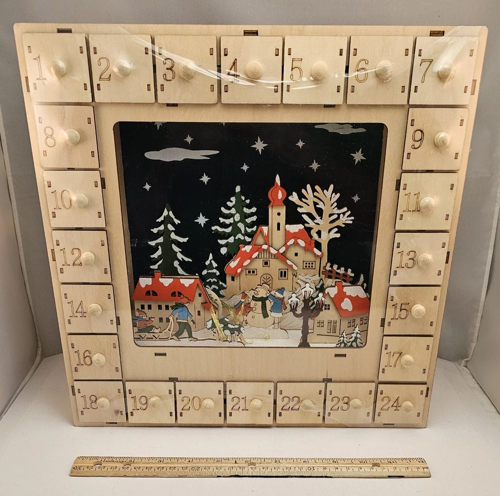 Martha Stewart Lighted Wooden Christmas Advent Calendar - New Sealed - READ. Condition is New Sealed. Please note that the mitten on the person pulling sled is hanging by a wood fiber. (Thinking it's a manufacturer defect as there isn't a hole in the plastic.) It can easily be reglued with a speck of glue. But I'm discounting the New price for this reason. Please see all photos for item details. Shipping USPS.