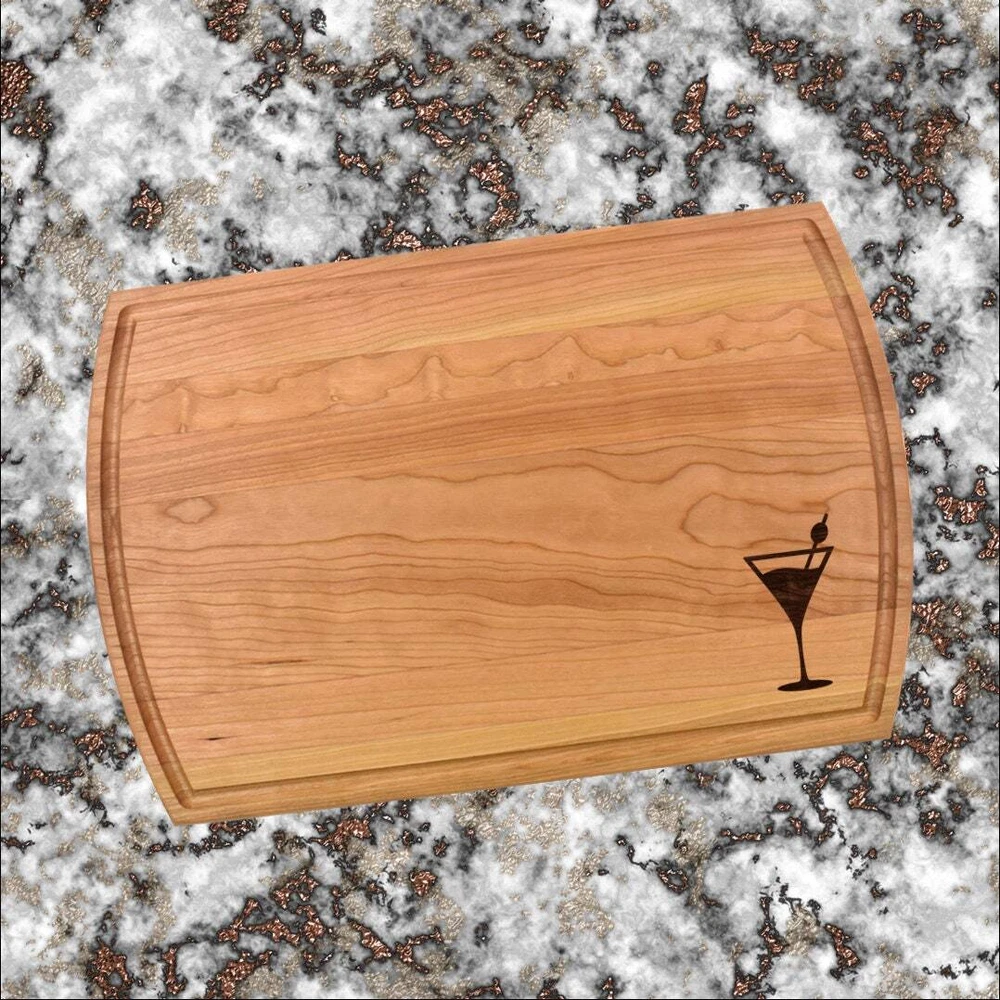 Design: Personalized Martini Glass Drink Cutting Board or Charcuterie Serving Tray All items ship via USPS - please make sure your address is correct :-) Whether used as a charcuterie serving tray for snacks or cutting board, our bamboo, walnut and cherry custom boards are the perfect addition for the home and make the perfect gift for your loved one celebrating a birthday, anniversary, new home, wedding, etc! *** FEATURES *** • SIZES: We have multiple styles and sizes available. To see our current sizes available, click the drop-down menu. The photo slide contains a photo showing each side by side. Please note, the board with the juice groove only has the groove on the front side of the board. • THICKNESS: Bamboo Boards - Approximately 1/2" Thick; Walnut & Cherry Boards - Approximately 3/4” Thick • UNIQUE: Every board is unique with the grain and coloring varying throughout - no board is the same! • CARE INSTRUCTIONS: Hand wash only with warm water. Do not soak. Please apply mineral oil throughout the board’s life. • PERSONALIZATION/CUSTIMIZATION: Do you want the text placed differently on the board? Please don’t hesitate to contact us. All personalization notes can be entered in the personalization box when checking out. • SHIPPING: All cutting boards ship within 2 to 5 business days. • WHOLESALE ORDERS: Please don’t hesitate to contact us for information about wholesale orders. Processing times for larger orders may change. • NOTE: Colors can vary a bit on different monitors and screens. Any props included in photos are not included. Please be sure to double-check your address to make sure it is accurate for USPS delivery. If a package is returned to us due to an invalid address, the buyer is responsible for all additional shipping charges. We appreciate you supporting small business – best wishes! For items ordered with simple edits, we do not send proofs since the layout doesn't change from the example(s). However, in the event there are requests that change the layout from the example(s), we do send proofs for approval before making the product. If you'd like a proof before we make the product, please note so in the personalization box.