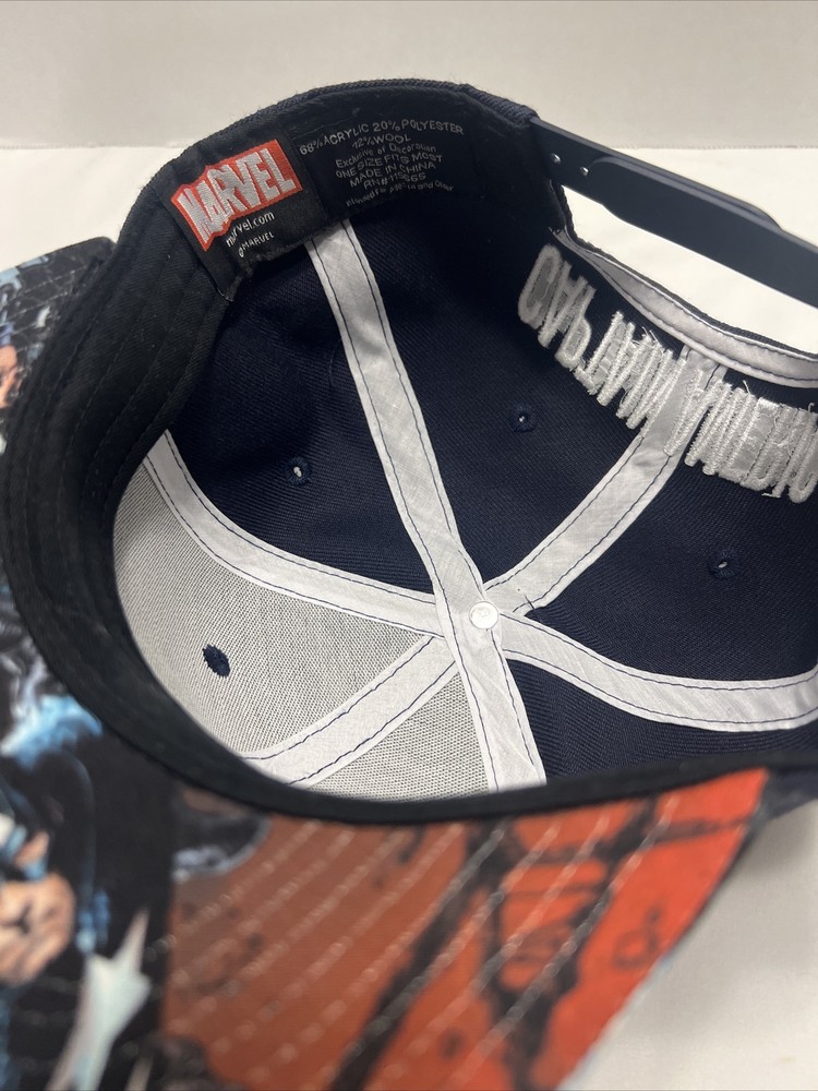 Marvel Captain America Blue Baseball Cap Flat Bill, Adjustable Snapback-NWOT