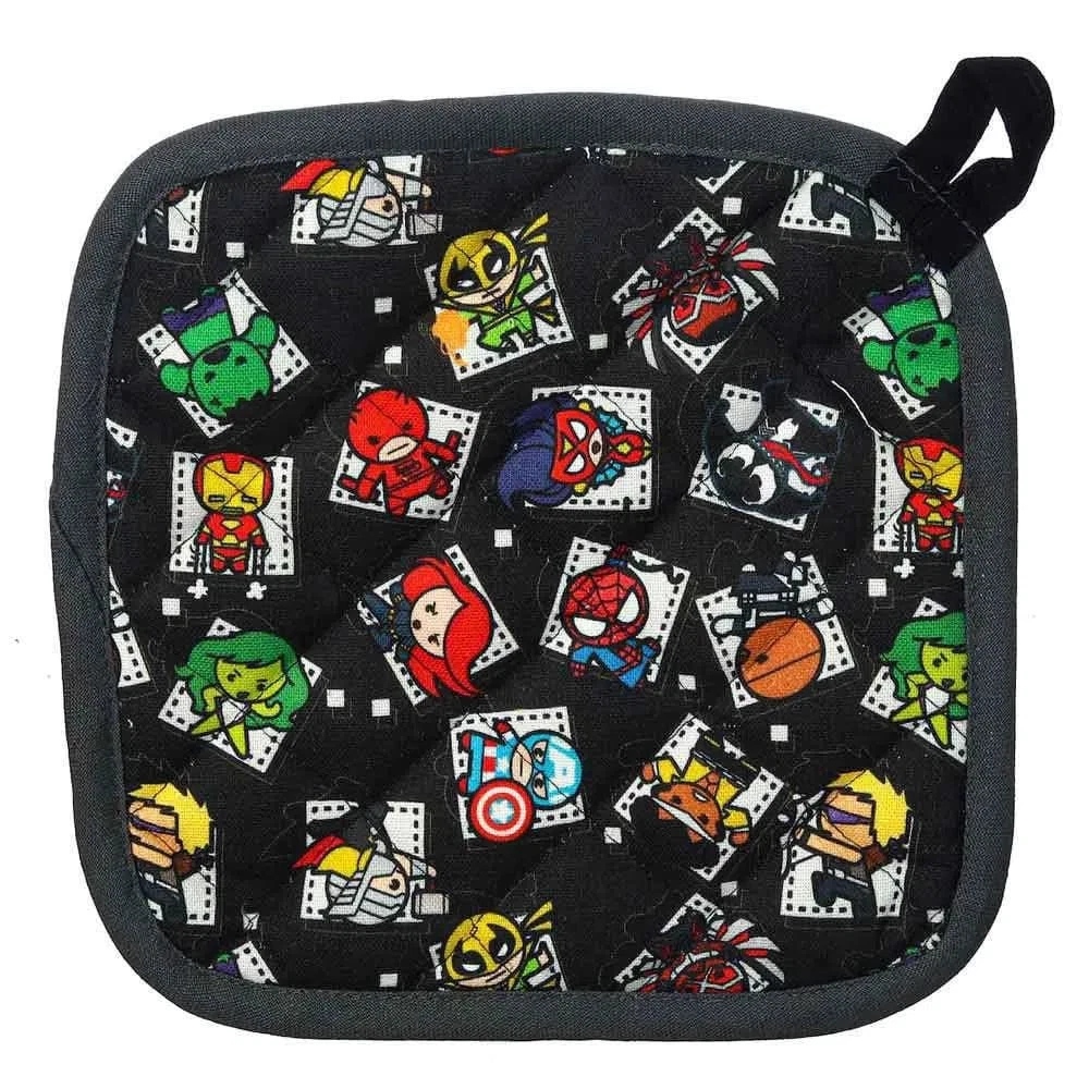 Marvel - Chibi Superheroes Hot Pad & Tea Towel Set - Bioworld Condition: New Bring the dynamic world of Marvel into your kitchen with Bioworld's Multiple Character Hot Pad & Tea Towel Set of 2. These kitchen essentials are screen-printed in rich colors, showcasing a vibrant array of iconic Marvel characters. The kitchen towel, designed for everyday cleanups, adds a touch of superhero flair to your culinary space, making chores more enjoyable. The hot pad complements the set with practical functionality and striking visuals, ensuring your kitchen is both stylish and well-equipped. Elevate your cooking experience with this set that celebrates the legendary characters of the Marvel universe. Bioworld's Marvel Multiple Character Hot Pad & Tea Towel Set of 2 is a must-have for Marvel enthusiasts and home chefs alike. The screen-printed designs capture the essence of beloved characters, transforming your kitchen into a superhero haven. The kitchen towel, perfect for daily use, brings excitement to routine tasks, while the hot pad provides essential protection with a pop of Marvel style. Whether you're a fan of Iron Man, Spider-Man, or the entire Marvel lineup, this set adds a dash of superhero magic to your kitchen, making every meal preparation an adventure. Product Features: Dish Towel Dimensions: 19 x 25 in. Hot Pad: 7 x 7 in. Care: Machine wash cold with like colors, No bleach, Tumble dry low or line dry Screen-printed in rich colors Kitchen towel great for everyday clean-ups Imported Browse what else we have in stock - thousands of toys, games, and other fun merchandise from Poggers, the best toy store in the world!