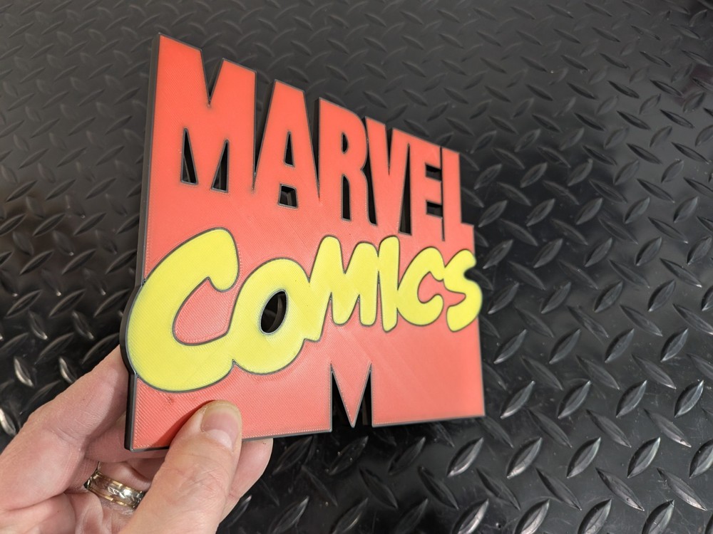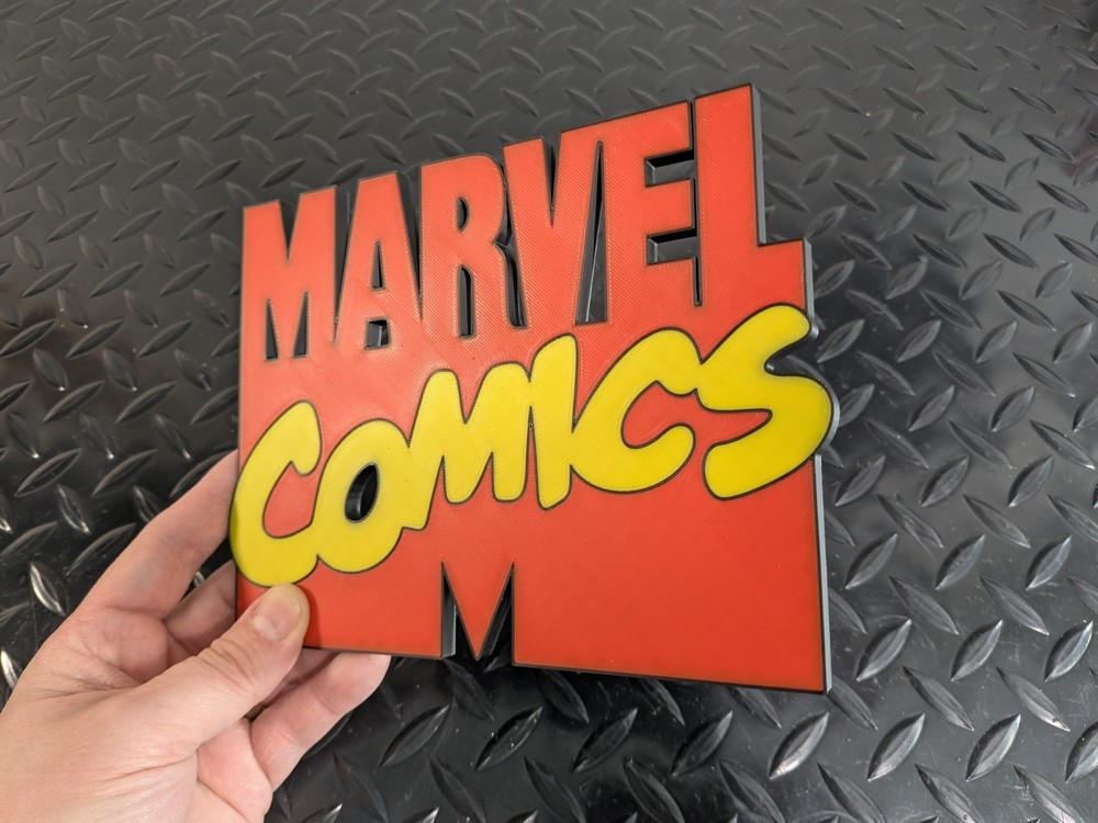 Marvel Comics Plaque Plaque – 3D Printed – Enthusiast Decor - Wall or Desk Art Bring your love for Marvel Comics t o life with this 3D printed plaque — a perfect piece for any fan’s collection. Whether displayed on your wall , desk , or in your man cave , this detailed emblem shows off your fandom in bold style. Features: ⚙️ 3D Printed Design: Created with high-quality plastic for clean lines and durable construction. 🎨 Crisp Detailing: Sharp logo edges and smooth finish that highlight the iconic plaque . 🖼️ Display Anywhere: Lightweight and easy to hang or set on a shelf or desk. 🧩 Perfect for Collectors: Great addition to any collection. Options: Finish: Multicolor plastic print. Size: 7.5" wide x 6.5" tall Pre-printed and ready to ship same day.