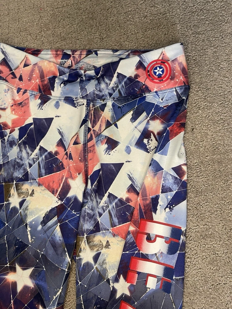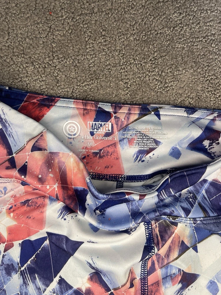 Add some superhero flair to your workout wardrobe with these Marvel Cropped Pants from Her Universe. The pants are made from a comfortable polyester blend and feature a colorful Marvel theme. The size is medium and the pants are designed for regular size types. Perfect for any female superhero fan, these leggings are ideal for activewear and come in a stylish cropped design. The brand is Marvel and the pants are categorized under clothing, shoes, and accessories for women. Get ready to lift some weights in style with these amazing pants.