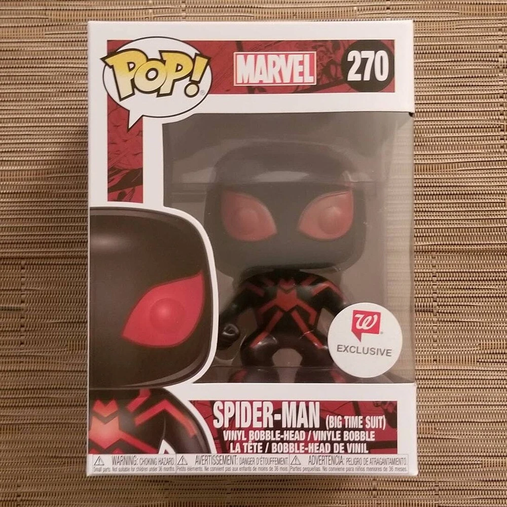Spider-man Big Time Suit Walgreens exclusive funko pop. In mint or near mint box condition. Will ship fast and with care!
