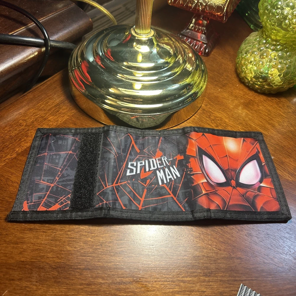 This Bioworld Spider-Man tri-fold wallet is a stylish and functional accessory for kids. The wallet features a bold red and black color scheme with a graphic of Spider-Man's web design, perfect for fans of the character. Made for both boys and girls, this wallet is designed to hold money securely with its folding feature. Ideal for storing pocket money or allowance, this Marvel-themed wallet is sure to be a hit with young fans of the friendly neighborhood superhero.