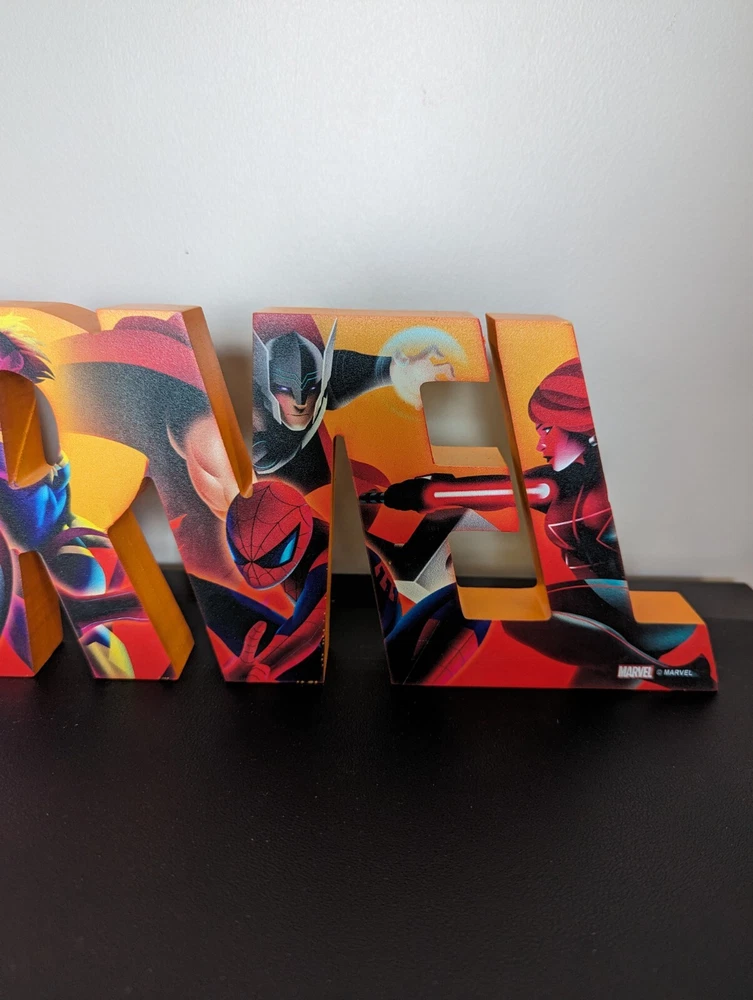 Marvel Superheroes Decor Sign, Art | Thor, Iron Man, Spiderman You will receive the exact item shown in the photos above. The item has a few areas of general wear, but is in good overall condition. Please see the provided photos for more condition details. Add some superhero flair to your home or office with this Marvel Decor Art Sign. The sign features your favorite Marvel characters including Iron Man, Captain America, Thor, Spiderman, Black Panther and more in a sleek and stylish design. Perfect for collectors and fans alike, this sign is a great addition to any space. The sign is perfect for adding a touch of art to any room. Whether you're a fan of the Avengers or just love superhero movies, this sign is a must-have for your collection. Thanks for looking!