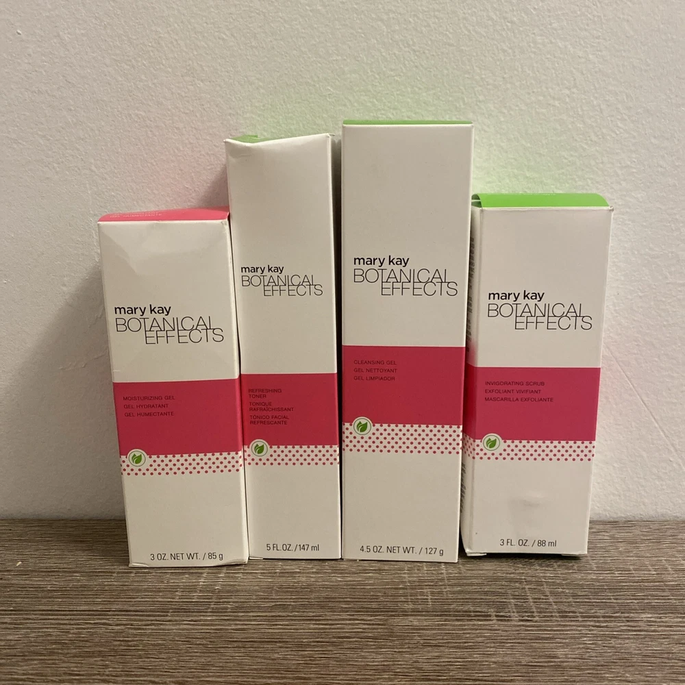 Mary Kay Botanical Effects Cleansing Gel, Toner, Scrub & Moisturizer Gel (NIB).