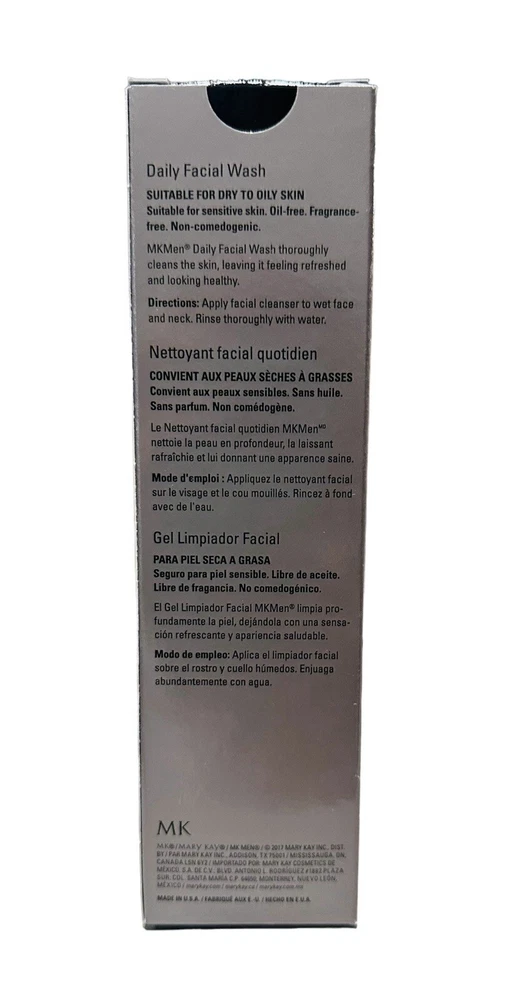 Mary Kay MK MEN Daily Facial Wash NEW in box Full Size 4.5 fl oz exp. 04/18/2027. ***IMPORTANT LEGAL DISCLAIMER: I am not affiliated with, sponsored by, or endorsed by Mary Kay or Mary Kay Inc I am not a former or current consultant. However, I do purchase and resell closeout inventory products that have been acquired through various sources. Due to Mary Kay's policies, the product you purchase does not and will not come with the Mary Kay guarantee. Any names, logos, or trademarks are used only to accurately describe the product being sold and are not meant to imply any affiliation. eBay's policies are strictly followed.***