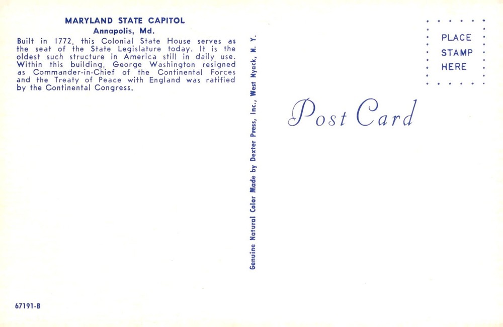 Built in 1772, the Maryland State Capitol in Annapolis is the oldest Colonial State House still in daily use in America. It holds historical significance as the place where George Washington resigned as Commander-in-Chief of the Continental Forces and the Treaty of Peace with England was ratified by the Continental Congress.