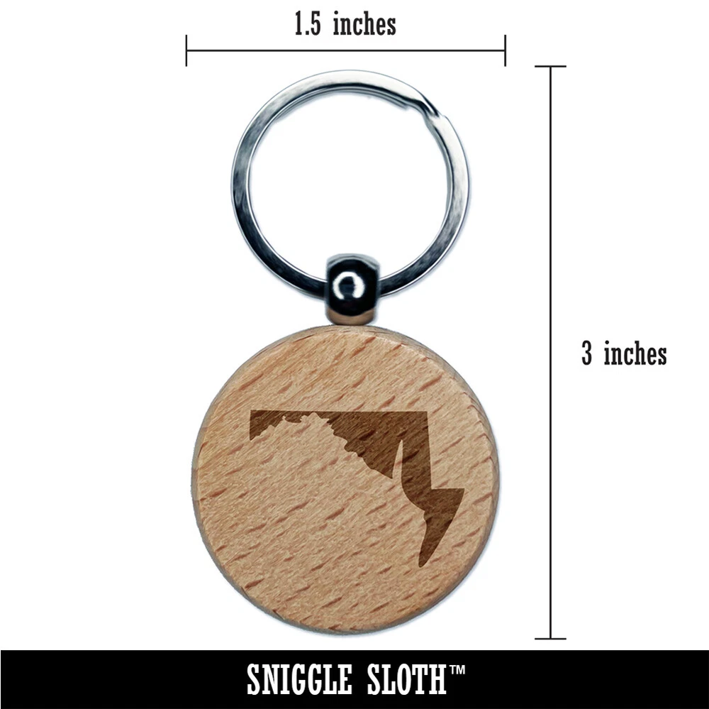 Maryland State Silhouette Engraved Wood Round Keychain Tag Charm