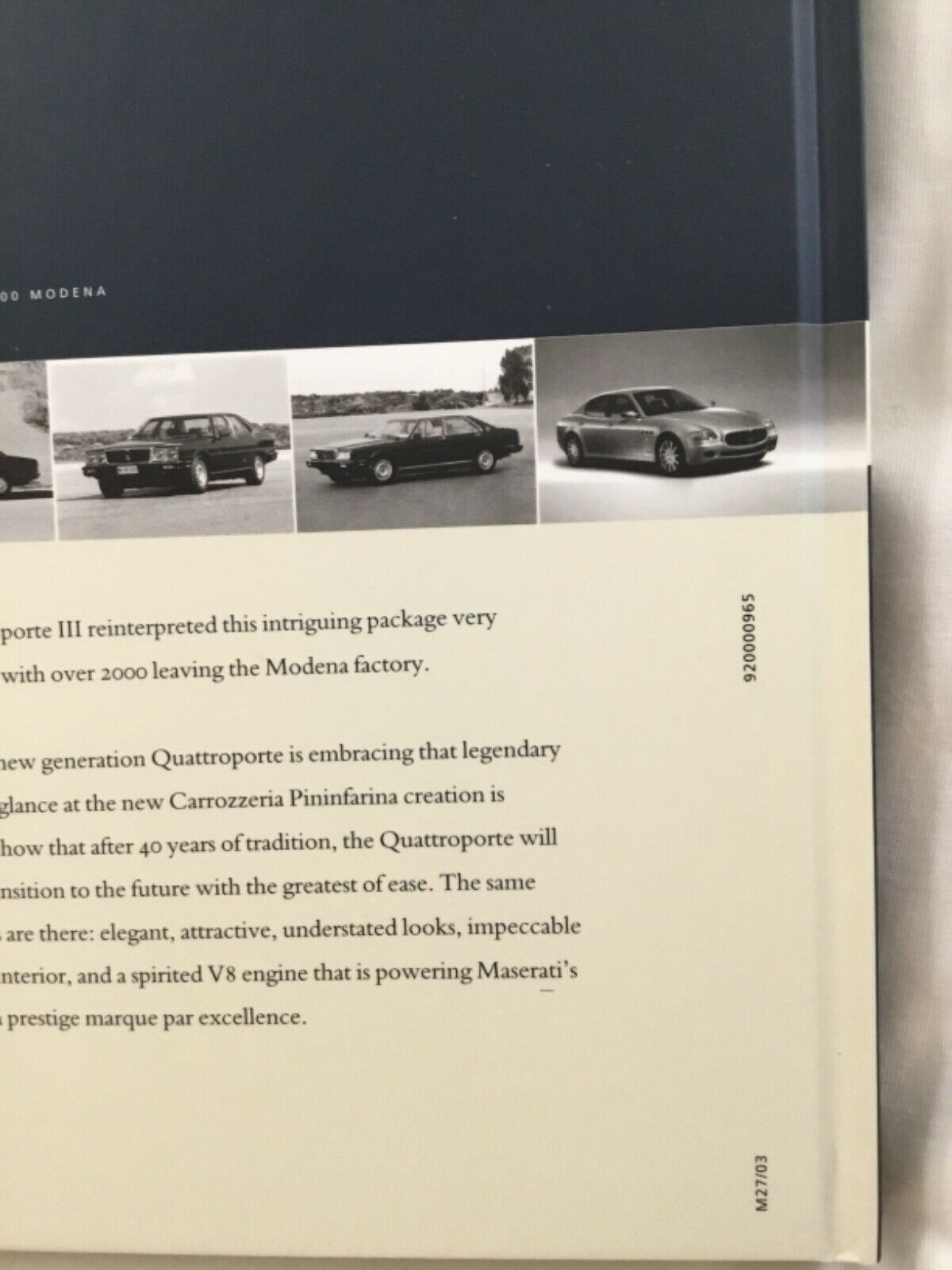 Maserati SPA history of the Quattroporte M139 AQ/340 100 + pages color lithography