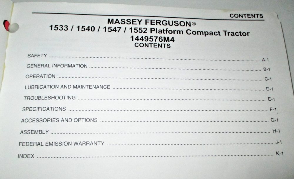 ORIGINAL! Operators Manual for the Massey Ferguson Model 1533, 1540, 1547 and 1552 Platform Compact Tractors. It has around 130 pages. Dated 2007 Manual number 1449576M4 Inventory no. MF-5166 **NOTE: OTHER SHIPPING OPTIONS ARE AVAILABLE UNDER THE "SHIPPING and PAYMENTS" TAB.** We combine shipping on same day multiple purchases if possible. Just message us for a combined invoice otherwise Ebay will automatically invoice you for full shipping charges. WE SHIP WORLD WIDE! Any package shipped to a location outside the USA, will pay higher shipping . If you are interested in Tractors & Farm or Construction Equipment, please check out my store & other auctions! International Buyers – Please Note : Import duties, taxes, and charges are not included in the item price or shipping cost. These charges are the buyer's responsibility. Please check with your country's customs office to determine what these additional costs will be prior to bidding or buying. THANKS FOR LOOKING!