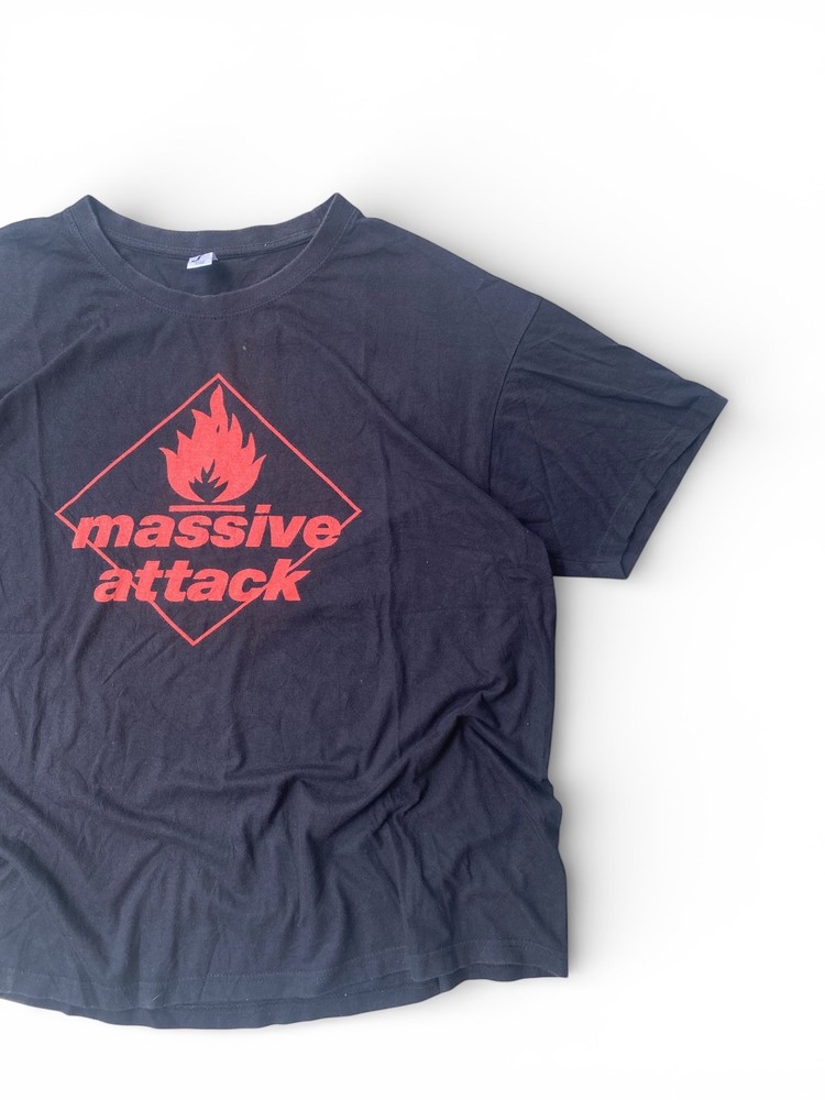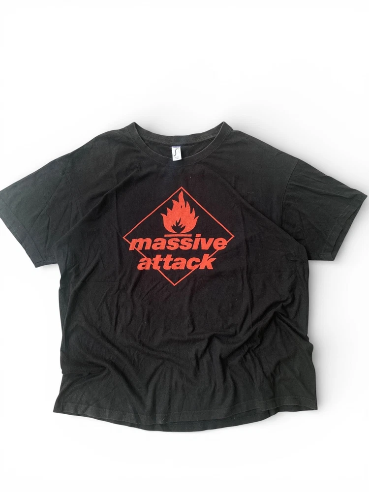 ⚠️ ICONIC TRIP-HOP BAND TEE — MINIMALIST MUSIC GRAIL ⚠️ Please read carefully and check all photos before purchasing. This is a Massive Attack graphic T-shirt featuring the bold flame logo and clean typography associated with the legendary Bristol trip-hop collective. Minimal front print with strong graphic presence — timeless, wearable, and highly collectible for music and archive streetwear fans. Massive Attack is a cornerstone of 90s alternative music culture. Pieces like this are increasingly hard to find, especially in larger sizes with clean prints and proper proportions. MEASUREMENTS: • Pit to pit: 23 inches • Length: 28 inches • Fit: XL — relaxed, boxy fit DETAILS: • Artist / Band: Massive Attack • Genre: Trip-hop / Electronic / Alternative • Era vibe: 90s–Y2K music culture • Print: Front logo print (flame + Massive Attack text) • Color: Black • Fabric: Cotton • Size tag: XL • Construction: Standard short sleeve tee • Vibe: Music archive, minimalist graphic, underground culture • Collector Note: Massive Attack merch is highly sought after due to limited production and strong cultural relevance CONDITION: 8.5/10 — Very good vintage condition • No holes • No major stains • Print still strong with light natural wear • Fabric soft and broken-in nicely SHIPPING: • Standard International Shipping: +$20 • DHL Express: +$35 (Recommended) TERMS: • Ask any questions before purchasing • Reasonable offers accepted — lowball offers ignored • All sales are final • New items uploaded weekly • Visit the shop for more music & archive pieces TAGS: #MassiveAttack #TripHop #BandTee #MusicMerch #VintageStyle #ArchiveFashion #RareTee #XLFit #90sVibe #Streetwear #Grail