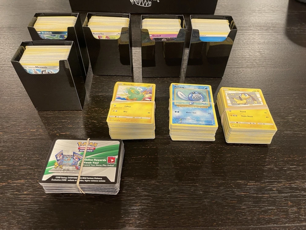Overview: For sale is one enormous Pokémon bundle—an all-in-one package perfect for collectors, players, or resellers looking to significantly expand their collection. This comprehensive lot includes: • Pokémon Cards: • 1,244 Standard Cards: • Comprised of 1,020 cards plus an additional 224 cards from various sets. Included are vintage cards from the classic 1995 Safari Pack, Gym Heroes, Promo, and Fossil sets (with dates from 1995, 1996, and 1998), as well as newer holographic cards (for example, an MCharizardEX) adding modern collectible appeal. • 89 Pokémon Online Trading Game Code Cards: • These codes unlock digital content for the Pokémon Trading Card Game Online. • Accessories & Collectibles: • Binder: • A sturdy binder (partially filled with cards) to help you organize and display your collection. • Travel Card Case: • A protective case designed for safely transporting your cards on the go. • Enamel Pins: • A selection of Pokémon enamel pins featuring popular designs (including favorites such as Snorlax, Raikou, etc.). Please review the photos for exact details on each pin. • Stickers: • Assorted Pokémon-themed stickers that are great for decorating binders, laptops, or personal items. • Card Protectors: • A set of clear, durable sleeves to safeguard your Pokémon cards from wear and tear. Additional Details: • This massive bundle offers a nostalgic mix of vintage cards alongside modern holographic collectibles, providing both long-time fans and newer collectors a diverse range of Pokémon memorabilia. • All items have been carefully stored and are in excellent condition. The lot is sold as-is, providing a comprehensive package for any Pokémon enthusiast.