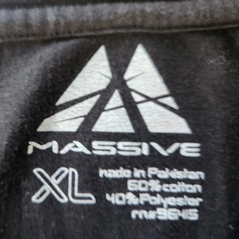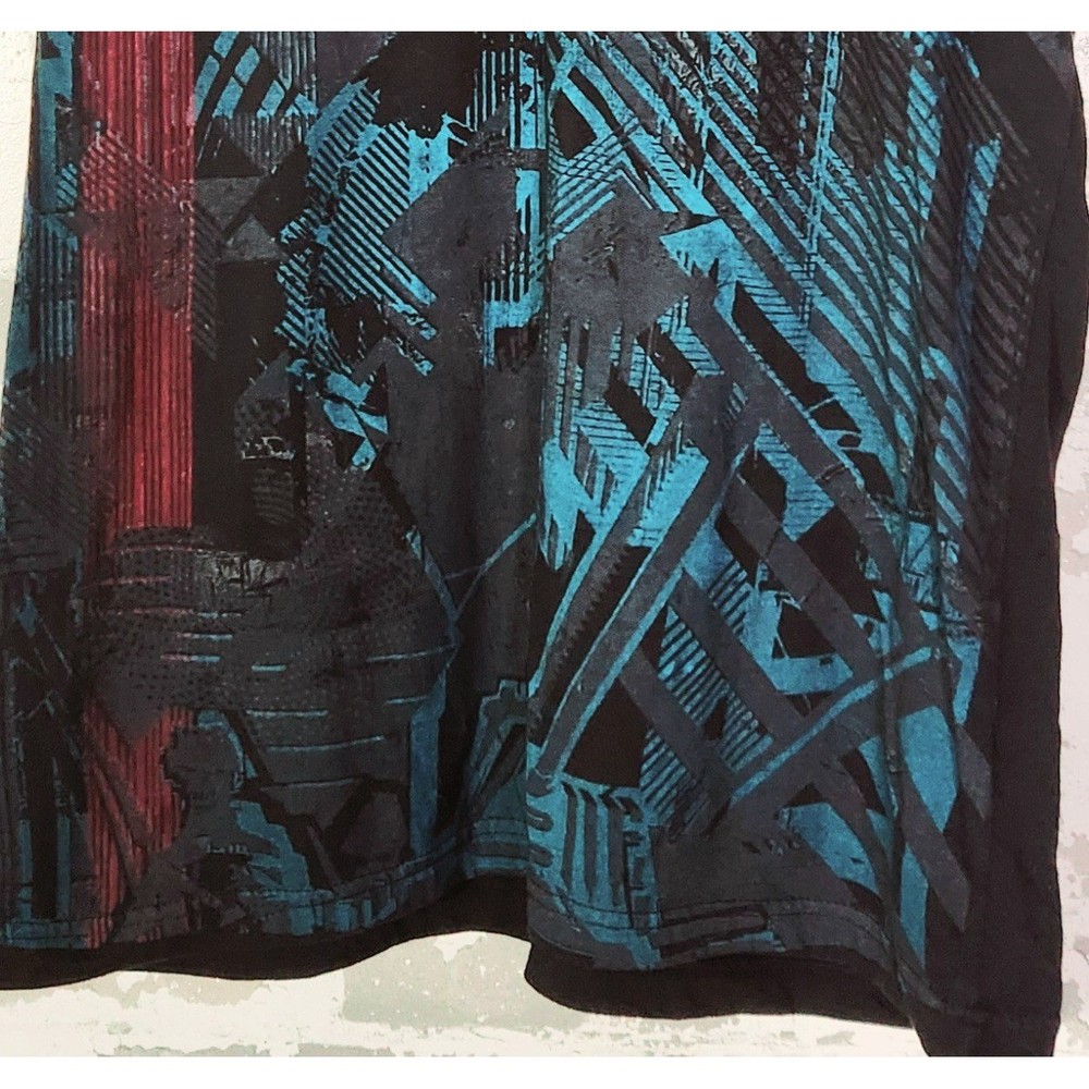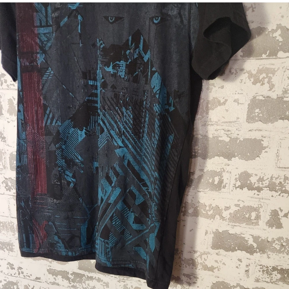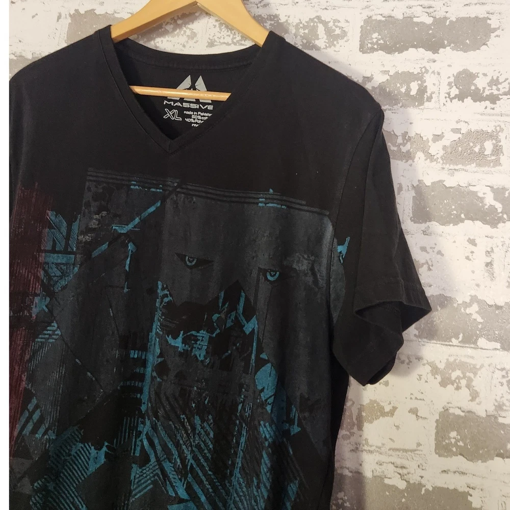 Brand: Massive Size: XL (Extra Large) Style: Short Sleeve V-Neck Material: 60% Cotton / 40% Polyester Color: Black with Blue and Red Graphic Art Condition: Pre-owned in good condition. Please see photos for exact details. Design Features This unique "Massive" brand tee features a bold, industrial-style abstract graphic. The print includes a stylized face with piercing blue eyes set against a geometric, architectural background in blue and red tones. It's a soft, breathable cotton blend perfect for casual wear or as a statement piece. Measurements (Lying Flat) Pit to Pit: Approx. 23 inches Length: Approx. 27 inches Please review measurements in the photos to insure a good and proper fit. Care Instructions: Machine wash cold with like colors. Tumble dry low. Note: Colors may vary slightly due to lighting and monitor settings. Please refer to the measurement photos to ensure a proper fit. Keywords: graphic tee, abstract print, V-neck shirt, short sleeve tee, mens casual wear, statement shirt, geometric design, urban style, streetwear, bold graphic, comfortable tee, versatile shirt We offer a 30-day money back refund, buyer pays return shipping. Orders will ship within 2 business days of order and payment. Thank you for your business and have a great day.