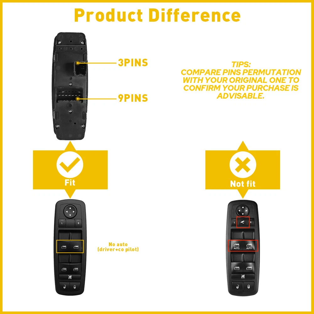 Window Control Switch Fits For Dodge, Jeep,Ram etc Fits for: 2008-2010 Chrysler Town & Country without Auto Down Feature 68039999AC 2008-2010 Dodge Grand Caravan without Auto Down Feature 68039999AC Not Fits OE: 4602535AH,4602535AI Not Fits OE: 4602535AC, 4602535AD, 4602535AE, 4602535AF, 4602535AG ONLY Fits OE: 68039999AA, 68039999AB, 68039999AC,3pins+9pins connector switch Specifications: Pin quantity: 3+9pin AUTO:0 Features: *Better stability with longer service life. *This power window switch fits, functions and matches the appearance of the old one for a perfect replacement. Master Power Door Window Control Switch For 2008-2010 Chrysler Town Country Window Control Switch Fits For Dodge, Jeep,Ram etc Fits for: 2008-2010 Chrysler Town & Country without Auto Down Feature 68039999AC 2008-2010 Dodge Grand Caravan without Auto Down Feature 68039999AC Not Fits OE: 4602535AH,4602535AI Not Fits OE: 4602535AC, 4602535AD, 4602535AE, 4602535AF, 4602535AG ONLY Fits OE: 68039999AA, 68039999AB, 68039999AC,3pins+9pins connector switch Specifications: Pin quantity: 3+9pin AUTO:0 Features: *Better stability with longer service life. *This power window switch fits, functions and matches the appearance of the old one for a perfect replacement. * Direct replacement without other tools. * It has undergone simulation and endurance testing to ensure proper fit and performance. Packaging include: Window control switch*1 Item Specifics Brand AUXITO Manufacturer Part Number Does Not Apply Manufacturer Warranty 1 Year Type Window control switch Fitment Type Direct Replacement Features Durable,Easy Installation Package Include Window control switch*1 Universal Fitment No Custom Bundle No Modified Item No Pin quantity 3 9pin AUTO 0 Payment We accept PayPal via eBay Secure Check-Out only. Immediate payment needs to be processed for items with Add to Cart option so that any promotional discounts can be applied to your order immediately. Shipping 1 .We do everything we can to ship your orders out as soon as possible. 2. Shipping and Handling: We process orders within two business day after the payment was clear. Returns Our 30-day Satisfaction Guarantee assures our customers that they will receive all orders promptly and exactly as described. In addition, it allows customers to return new and unused products in their original factory condition for any reason within 30 days from the date of purchase. 1. All returns must be pre-approved by AUXITO and have a return merchandise authorization(RMA) number. Unauthorized returns will not be accepted. 2. Buyers are responsible for appropriate packing, returning shipping cost, insurance and returning the item in "new" condition. Used items will not be accepted for return. 3. We will replace the returning item with an identical item, issue a full store credit or a full refund. Contact Us Our Working Time:(GMT+8)Monday to Friday,9:00-18:00. For inquires and customer support, please send your email via ebay email system. All emails will be responded to within 24 hours during business days. Feedbacks 1. We appreciate your business and strived to improve our customer service and our commitment to quality. 2. We will leave a positive feedback immediately after payment is received. We appreciate a positive feedback as much as you do. 3. If for some reason there is any issue with the purchase, please contact us prior to leaving feedback, and we will be glad to work with you to have it resolved. DESCRIPTION PAYMENT SHIPPING RETURN POLICY CONTACT US Hot Item Fit For 2015-2019 Hyundai Center Light Gray Sonata Armrest Console Lid Cover USD 12.34 146PCS For Toyota RAV4 Fender Door Hood Bumper Trim Clip Retainer Fastener Kit USD 10.92 4" Red Truck Long Performance High Flow Cold Air Intake Cone Dry Filter Cotton USD 27.54 Waterproof Motorcycle Handlebar Dual USB Phone Charger Cigarette Lighter Socket USD 13.29 190 PCS Bumper Fender Moulding Side Garnish Grille Retainer Clip ABS Various USD 10.44 Hot Item Waterproof Motorcycle Handlebar Dual USB Phone Charger Cigarette Lighter Socket USD 13.29 Fit For 2015-2019 Hyundai Center Light Gray Sonata Armrest Console Lid Cover USD 12.34 146PCS For Toyota RAV4 Fender Door Hood Bumper Trim Clip Retainer Fastener Kit USD 10.92 4" Red Truck Long Performance High Flow Cold Air Intake Cone Dry Filter Cotton USD 27.54 190 PCS Bumper Fender Moulding Side Garnish Grille Retainer Clip ABS Various USD 10.44 Master Power Door Window Control Switch For 2008-2010 Chrysler Town Country Window Control Switch Fits For Dodge, Jeep,Ram etc Fits for: 2008-2010 Chrysler Town & Country without Auto Down Feature 68039999AC 2008-2010 Dodge Grand Caravan without Auto Down Feature 68039999AC Not Fits OE: 4602535AH,4602535AI Not Fits OE: 4602535AC, 4602535AD, 4602535AE, 4602535AF, 4602535AG ONLY Fits OE: 68039999AA, 68039999AB, 68039999AC,3pins+9pins connector switch Specifications: Pin quantity: 3+9pin AUTO:0 Features: *Better stability with longer service life. *This power window switch fits, functions and matches the appearance of the old one for a perfect replacement. * Direct replacement without other tools. * It has undergone simulation and endurance testing to ensure proper fit and performance. Packaging include: Window control switch*1 Payment We accept PayPal via eBay Secure Check-Out only. Immediate payment needs to be processed for items with Add to Cart option so that any promotional discounts can be applied to your order immediately. Shipping 1 .We do everything we can to ship your orders out as soon as possible. 2. Shipping and Handling: We process orders within two business day after the payment was clear. Returns Our 30-day Satisfaction Guarantee assures our customers that they will receive all orders promptly and exactly as described. In addition, it allows customers to return new and unused products in their original factory condition for any reason within 30 days from the date of purchase. 1. All returns must be pre-approved by AUXITO and have a return mer