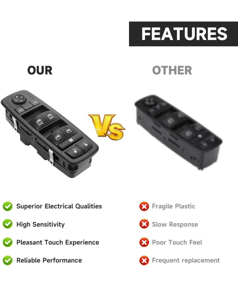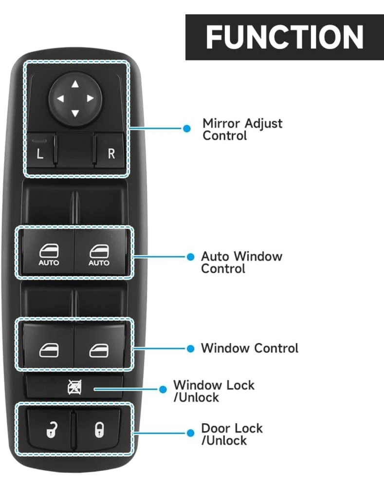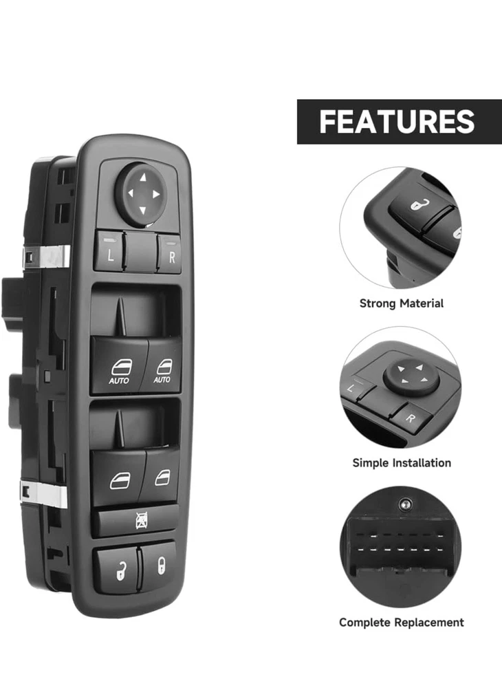Front Left Driver Side Master Power Window Switch 3+9 Pins - Compatible for Jeep Cherokee 4 Cyl 2.4L, 6 Cyl 3.2L 2014 - Replace Part 68141894AA Vehicle Fitment - Compatible for Jeep Cherokee 2014 4 Cyl 2.4L, 6 Cyl 3.2L. (Small plug: 3 pin; Large plug: 9 pin). (Not for 2015-2020 Jeep Cherokee.) [REPLACE PART NO.] 68141894AA. NOTE: Small plug: 3 pin; Large plug: 9 pin,This window switch won't suit your car if the position and PIN number (3+9) don't match. Prior to buying, please verify the make, model, and year of your vehicle. Function - The master power window switch if it is cracked or broken will greatly affect privacy and safety, please replace it in time.Terminal connector for plug andplay style, just need to remove your original window control switch and install.