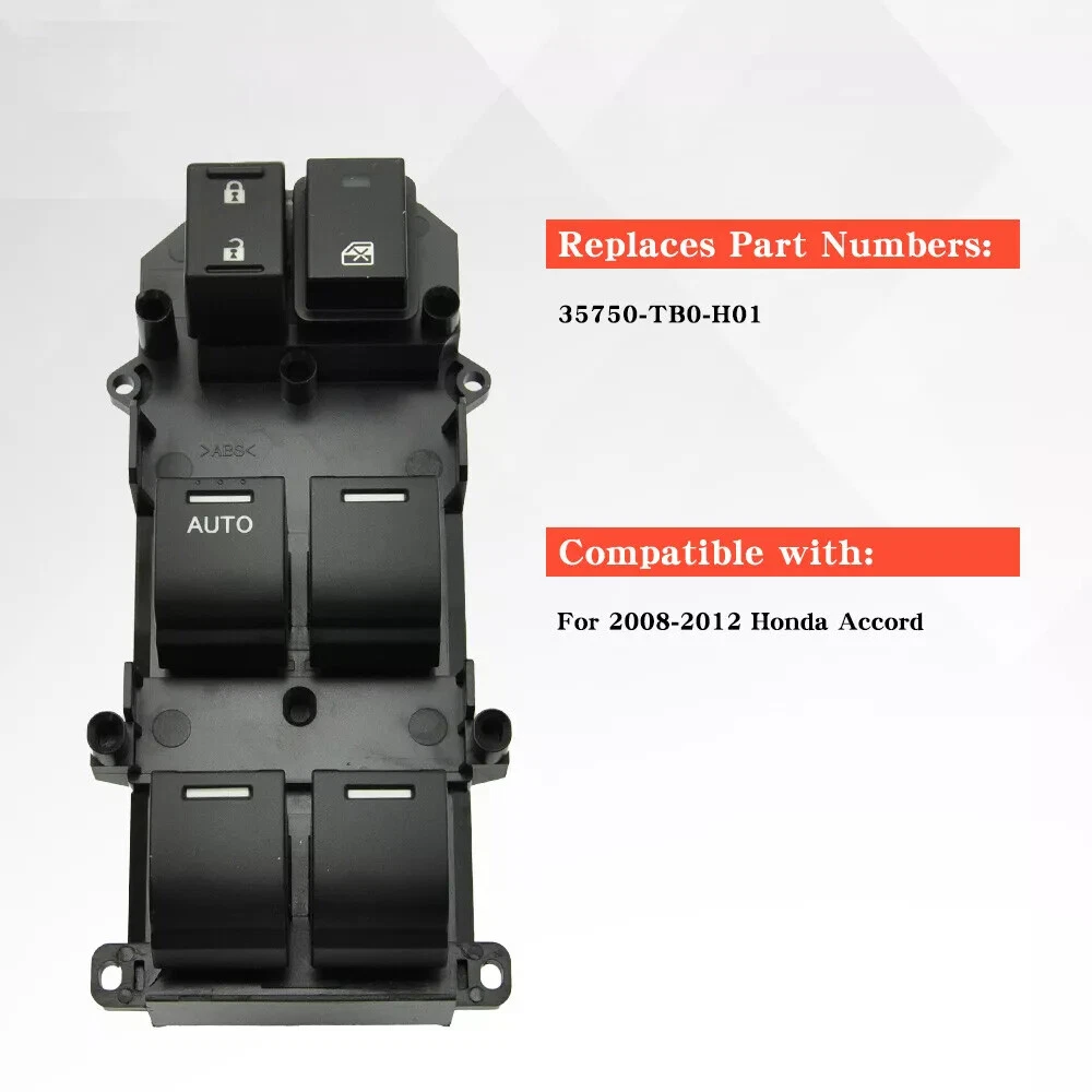 35750-TB0-H01 Master Power Window Switch For 2008-2012 Honda Accord Front Left Driver Side Repalce OE Number: 35750-TB0-H01 35750TB0H01 35750 TB0 H01 Features: Brand: Unbranded Other part number: 35750-TB0-H02、35750-TBD-H13 Connector: 37PINS Color: black To Control: Window Switch Type: Power Master Control Window Switch Fitment Type: Direct Replacement -Each item tested before ship -Brand new product, 100% aftermarket -One Year Warranty -High Quality and stable performance Package Including: 1x Window switch(35750-TB0-H01) Fitment: Fits For 2008-2012 Honda Accord
