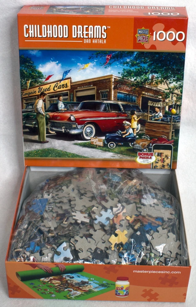 This MasterPieces jigsaw puzzle is a great addition to any puzzle collection. With 1000 pieces, it provides a fun and challenging experience for puzzle enthusiasts of all ages. The puzzle features a multi-color nostalgic design with a theme of Childhood Dreams, and is made of high-quality cardboard material. The puzzle is interlocking and comes from a smoke-free home, making it a perfect choice for a family activity or a solo puzzle night.Recommended for ages 14 and up, this puzzle is sure to provide hours of entertainment. Doing puzzles has some hidden benefits Excellent qualities : Cultivate concentration, patience, and temper your will Movement development : Train hand-eye coordination and precise small movements Spatial intelligence : Improve visual discrimination of colors and shapes Critical thinking ability : Understand the relationship between parts and the whole, and draw inferences from one example to explore the future Relaxes your mind : Relieve work pressure and release yourself Brain development : Enhance memory and may help prevent or slow brain degeneration Puzzle pieces are all bagged. Each item we ship is carefully packaged to prevent any damage and is shipped immediately with tracking. Anticipated Benefits of Puzzles for Children Overcoming attention deficit Strengthening visual memory Improving problem solving skills Strengthening hand-eye coordination Improve fine motor skills Improve gross motor skills Shape recognition ability Gain the ability of setting goals Learning patience