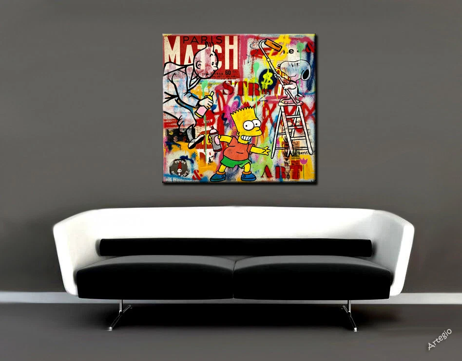 Welcome to a perfect artwork Cartoons Graffiti Bild UVP89€ in Größe: 60x60 cm. Bild ist angespannt und fertig zum Aufhängen Material:Lainwand pure Cotton Es handelt sich um hochwertigen Bild mit Zertifikat. Wir bestätigen, dass dieses Design auf Baumwollleinwand und wurde gemacht mit Acryl- und ultrachromatische Farben. Abgeschlossen mit einem Streifen Glanz, der eine lange Lebensdauer gewährleistet und macht es zu einem wahren Kunstwerk Hier Mehr solcher Bilder Cartoons Pop Graffiti an! World art Gallery Artegio: Seit 1982 aus Leidenschaft für internationale Kunst. Er hat viele berühmte zeitgenössische Künstler produziert und mit ihnen zusammengearbeitet. Was uns auszeichnet ist Professionalität u die Fähigkeit zu erfinden, zu erschaffen, reproduzieren Werke der berühmtesten Künstler der Welt