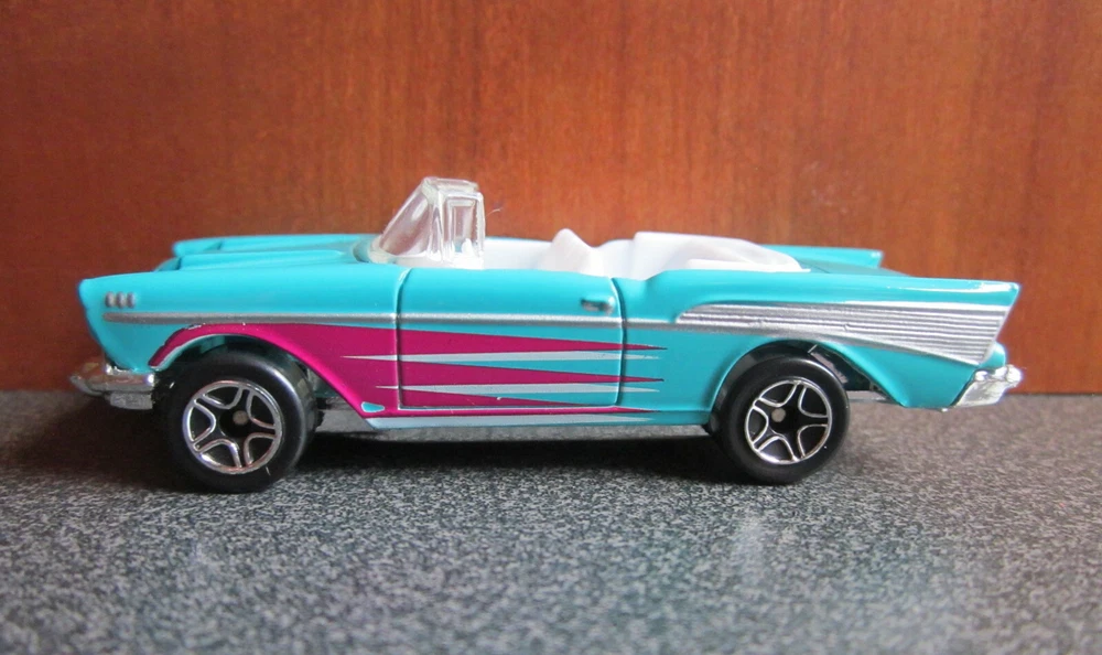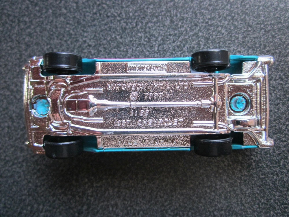 Color: Turquoise Brand: Matchbox Country/Region of Manufacture: China Vehicle Make: Chevrolet Model: Convertible Scale: 1:66 Vehicle Year: 1957 UPC: Does not apply Material: Diecast Vehicle Type: Car gtin13: Does not apply