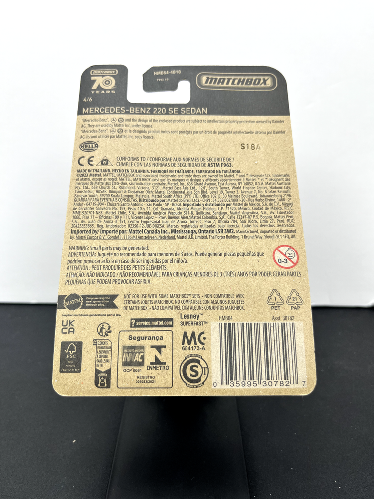 gtin13: 027084120134 Material: Diecast Year of Manufacture: 2024 Vehicle Type: Car Color: Red Vehicle Year: 1962 Series: Matchbox Mainline Scale: 1:64 Vehicle Make: Mercedes-Benz UPC: 027084120134 Brand: Matchbox Model: Mercedes Benz 220 SE Sedan
