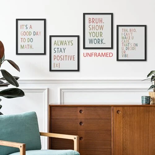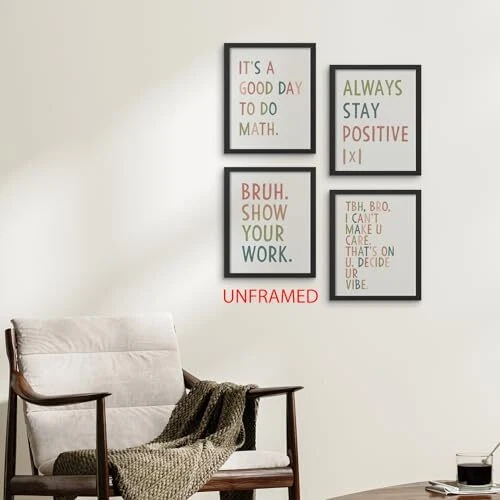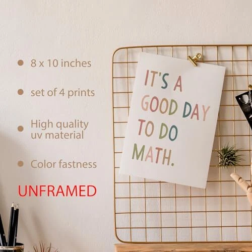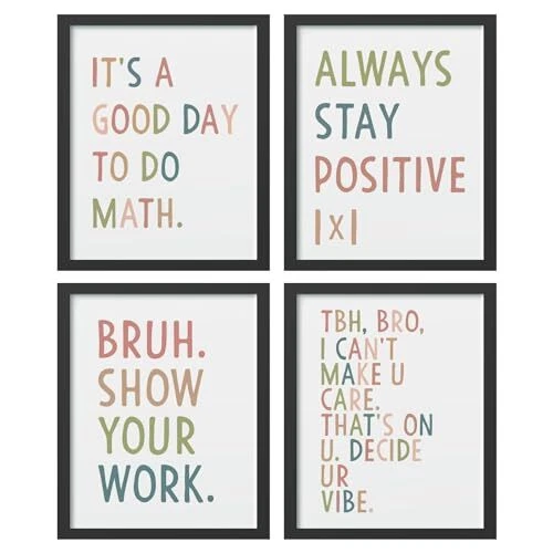 Return Policy Fast Delivery Trusted seller Math Classroom Decor Wall Art Prints Set of 4 Unframed - Math Teacher Classroom Decor, Middle High School Classroom Posters, Funny Math Class Room Wall Decor for Math Teacher(8x10 Inches) Product Description [Dimensions] These Wall Art Posters measures 10 inches long and 8 inches wide. One set contains 4 pieces posters. Please note that the poster frames are not included. [Design] Designed with vibrant colors and rich details, these wall art pieces can be arranged together to create a harmonious display, or used separately to enhance the style and personality of any space. [Widely Applicable] These poster wall art is a versatile decorative piece for all kinds of spaces. Whether it's a nursery, toddler girl boy room, classroom, kids playroom, college dorm, beach house, living room, bedroom, office, or anyw that needs to be decorated, these poster wall arts will fit perfectly into any environment. [Perfect Decoration] When you purchase our product, you will receive 4 poster prints. You can choose different hanging options to decorate your space according to your preference. They can fulfill your various decorating needs. [Decorative Gifts] The design of the wall art posters pattern is beautiful and innovative. They can serve as a decorative gift for friends, family, daughters, kids, or anyone you choose. In addition, they can be used as a decoration for the four seasons and various holiday celebrations, including Easter, Mother's Day, Father's Day, Christmas, the first day of school, graduation day, etc. Shipping Returns Payment Shipping Shipping is FREE to all addresses other than APO/PO boxes in the lower 48 states. All our stock ships from US-based warehouses. Shipped via USPS or UPS (depending on location and package weight) Unless stated otherwise, all orders will ship within 24-72 hours of your payment being processed. Check our feedback to see the great reviews of FAST shipping we offer. Returns Seller does not accept returns Payment We currently accept payment via eBay managed payments only. Once payment is cleared, we will dispatch your shipment within 1-3 business days. Please refer to the "Shipping" tab for more information regarding shipping speed to your destination.