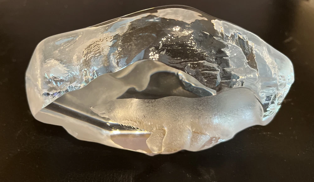 HomeMats Jonasson Sweden Glass Crystal Polar Bear Sculpture Paperweight Signed 3550