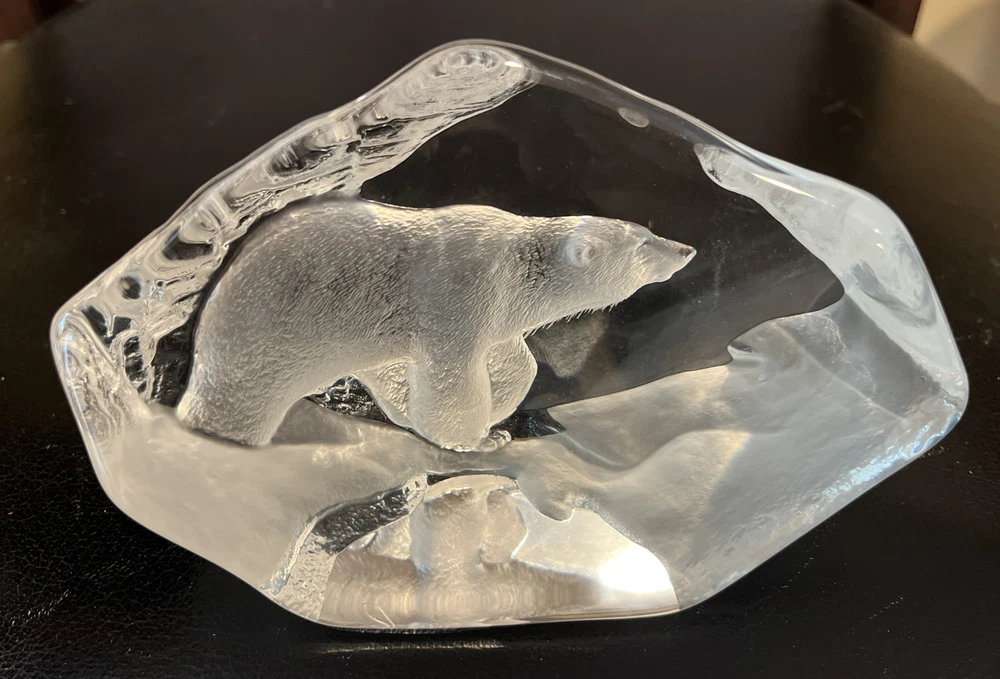Mats Jonasson Sweden Glass Crystal Polar Bear Sculpture Paperweight Signed 3550