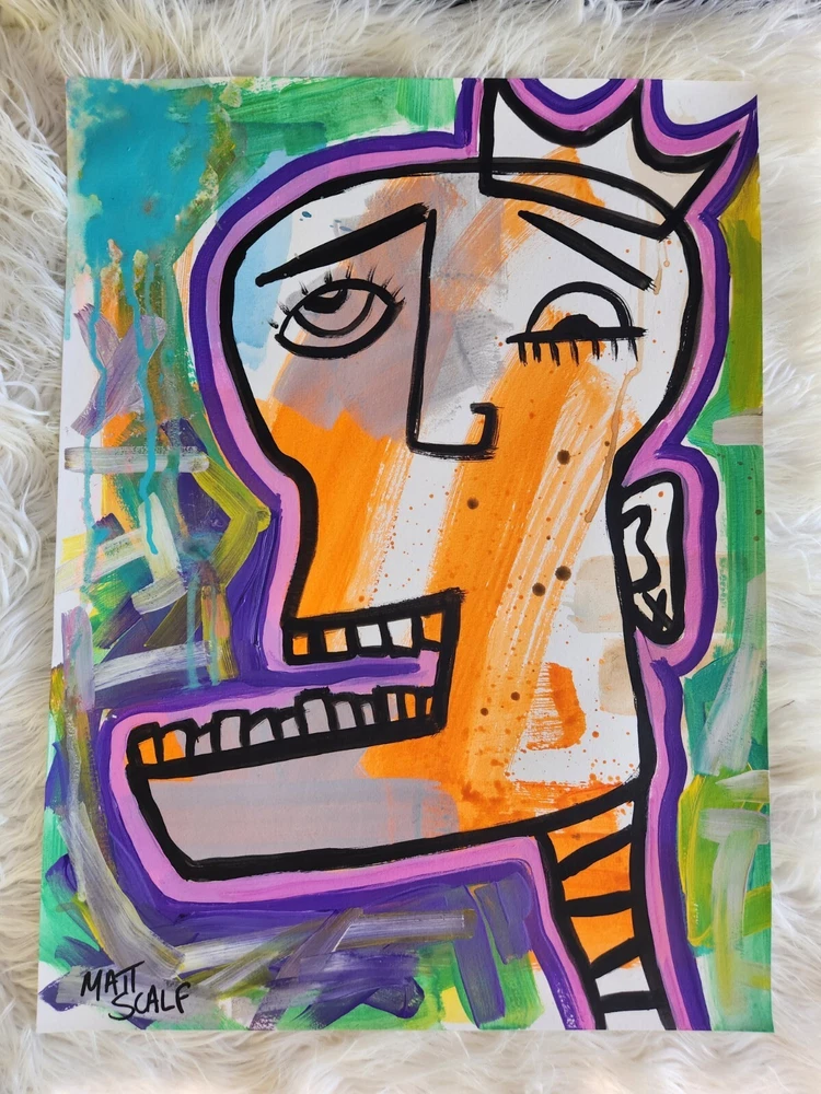 This is your chance to own a one of a kind SIGNED ORIGINAL painting from a contemporary artist. This is NOT a print, this is an original painting. DETAILS: Artist: Matt Scalf Title: Face Size: 18x24 Media: Acrylic on Paper. Cold Press 140lb 300g paper. Note: All paintings will come without a frame and will need to be framed before hanging. Artist Info: Husband and wife, Matt and Maria Scalf are contemporary artists who live in the foothills of the Blue Ridge Mountains of North Carolina. Item: 1565 Fast Shipping All orders will ship within 1 business day. Monday-Friday (Except Holidays) Please check out our other art! Check out our website.