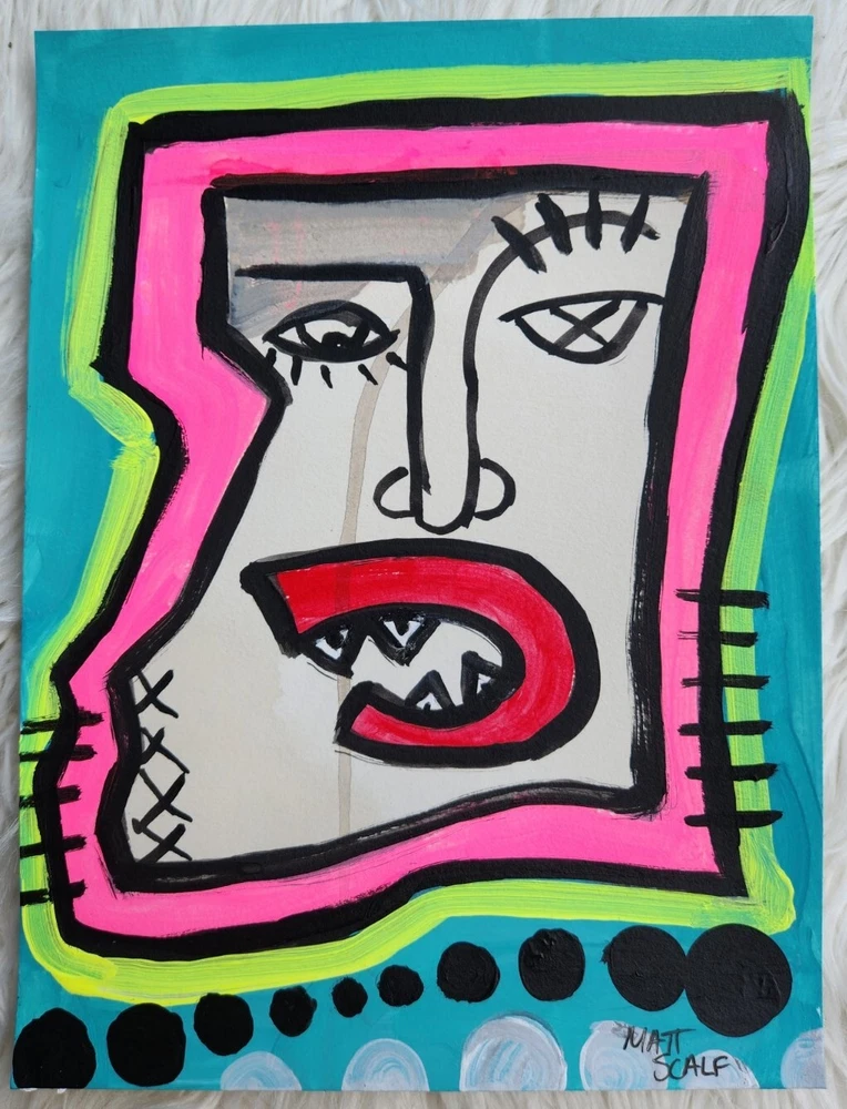 This is your chance to own a one of a kind SIGNED ORIGINAL painting from a contemporary artist. This is NOT a print, this is an original painting. DETAILS: Artist: Matt Scalf Title: Face Size: 9x12 Media: Acrylic on Paper. Cold Press 140lb 300g paper. Note: All paintings will come without a frame and will need to be framed before hanging. Artist Info: Husband and wife, Matt and Maria Scalf are contemporary artists who live in the foothills of the Blue Ridge Mountains of North Carolina. Item: 1483 Fast Shipping All orders will ship within 1 business day. Monday-Friday (Except Holidays) Please check out our other art! Check out our website.