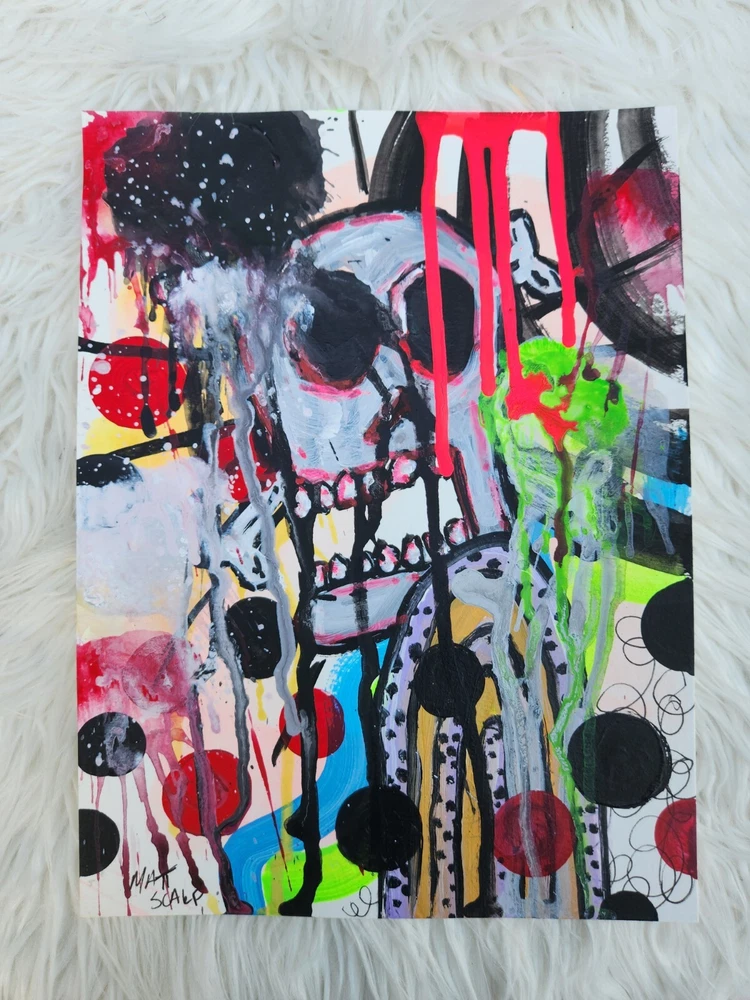 This is your chance to own a one of a kind SIGNED ORIGINAL painting from a contemporary artist. This is NOT a print, this is an original painting. DETAILS: Artist: Matt Scalf Title: Abstract Size: 9x12 Media: Acrylic on Paper. Cold Press 140lb 300g paper. Note: All paintings will come without a frame and will need to be framed before hanging. Artist Info: Husband and wife, Matt and Maria Scalf are contemporary artists who live in the foothills of the Blue Ridge Mountains of North Carolina. Item: 1527 Fast Shipping All orders will ship within 1 business day. Monday-Friday (Except Holidays) Please check out our other art! Check out our website.