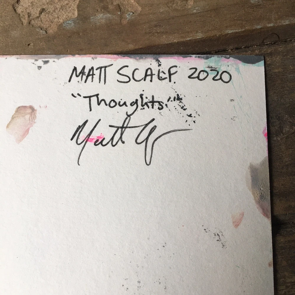 This is your chance to own a one of a kind SIGNED ORIGINAL painting from a contemporary artist. This is NOT a print, this is an original painting. DETAILS: Artist: Matt Scalf Title: Thoughts Size: 9x12 Media: Acrylic on Paper. Cold Press 140lb 300g paper. Note: All paintings will come without a frame and will need to be framed before hanging. Artist Info: Husband and wife, Matt and Maria Scalf are contemporary artists who live in the foothills of the Blue Ridge Mountains of North Carolina.. Item: 273 / A262 Fast Shipping All orders will ship within 1 business day. Monday-Friday (Except Holidays) Please check out our other art! Check out our website.