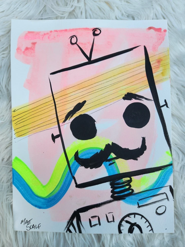 This is your chance to own a one of a kind SIGNED ORIGINAL painting from a contemporary artist. This is NOT a print, this is an original painting. DETAILS: Artist: Matt Scalf Title: Robot Size: 9x12 Media: Acrylic on Paper. Cold Press 140lb 300g paper. Note: All paintings will come without a frame and will need to be framed before hanging. Artist Info: Husband and wife, Matt and Maria Scalf are contemporary artists who live in the foothills of the Blue Ridge Mountains of North Carolina. Item: 1519 Fast Shipping All orders will ship within 1 business day. Monday-Friday (Except Holidays) Please check out our other art! Check out our website.