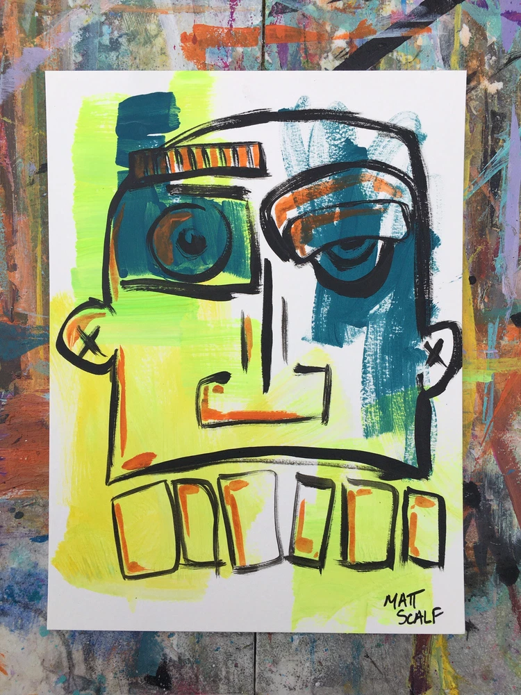 This is your chance to own a one of a kind SIGNED ORIGINAL painting from a contemporary artist. This is NOT a print, this is an original painting. DETAILS: Artist: Matt Scalf Title: Face Size: 9x12 Media: Acrylic on Paper. Cold Press 140lb 300g paper. Note: All paintings will come without a frame and will need to be framed before hanging. Artist Info: Our names are Matt Scalf and Maria Scalf. We are full time artists. We live in the foothills of the Blue Ridge Mountains in North Carolina. We are married and have two beautiful children. Item: 802 Fast Shipping All orders will ship within 1 business day. Monday-Friday (Except Holidays) Please check out our other art! Check out our website.