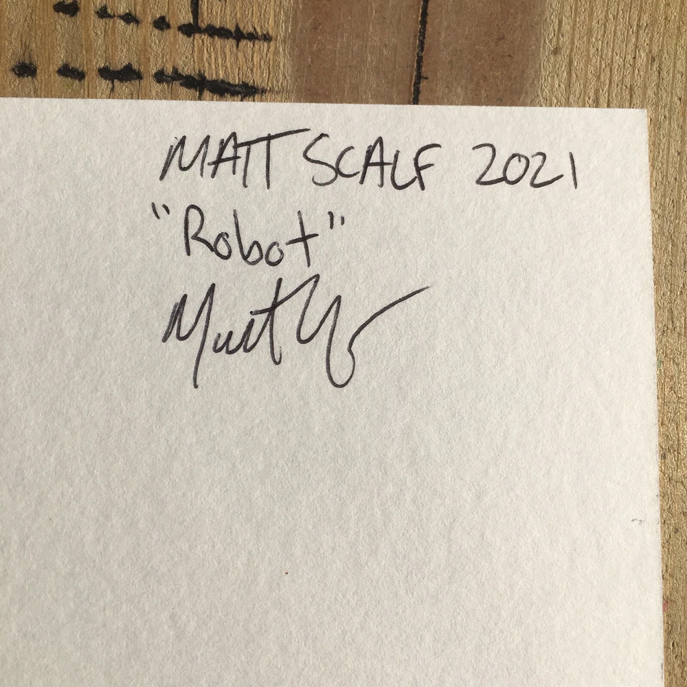 This is your chance to own a one of a kind SIGNED ORIGINAL painting from a contemporary artist. This is NOT a print, this is an original painting. DETAILS: Artist: Matt Scalf Title: Robot Size: 9x12 Media: Acrylic on Paper. Cold Press 140lb 300g paper. Note: All paintings will come without a frame and will need to be framed before hanging. Artist Info: Husband and wife, Matt and Maria Scalf are contemporary artists who live in the foothills of the Blue Ridge Mountains of North Carolina.. Item: 873 Fast Shipping All orders will ship within 1 business day. Monday-Friday (Except Holidays) Please check out our other art! Check out our website.