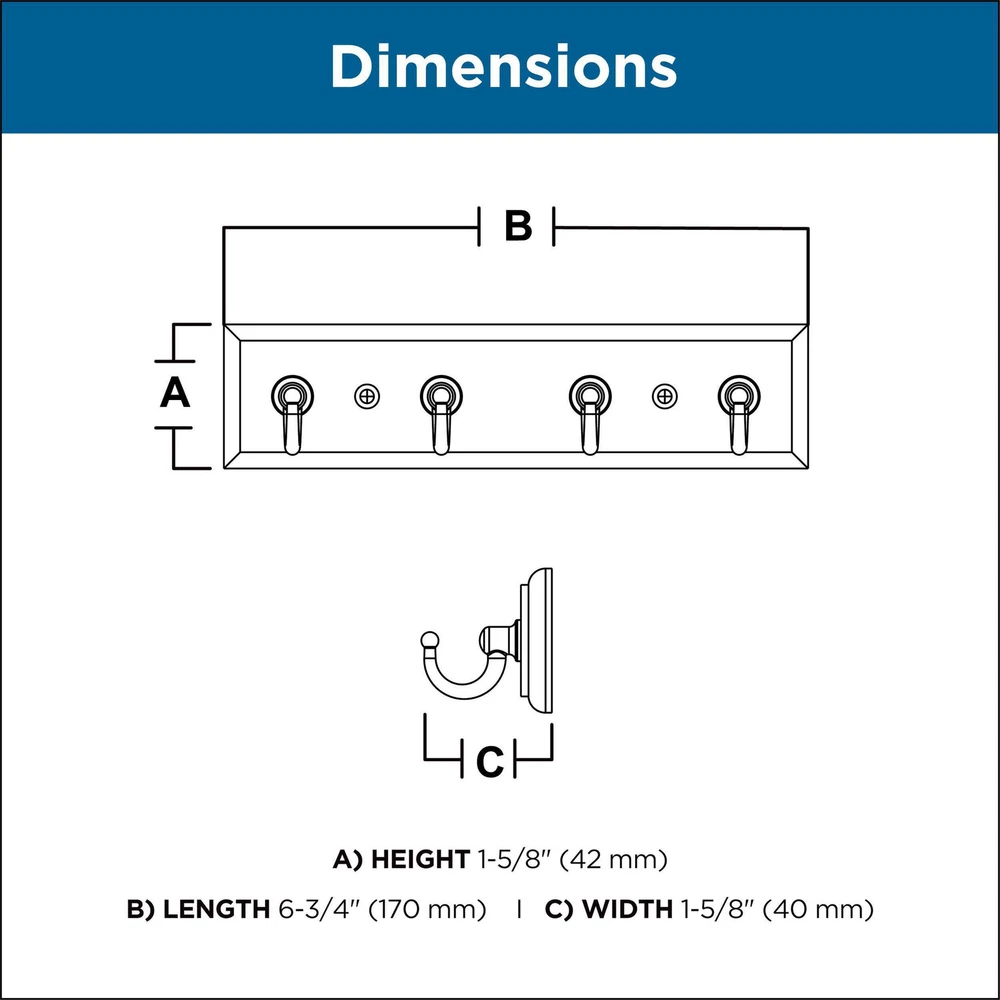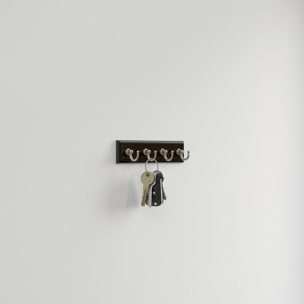 This 7 inch decorative key rail features 4 handsome hooks in matte nickel against a modern matte black backing. Hook rails pack a lot of storage in a wall-mounted solution that adds to your home’s ambiance. The casual rail coordinates with many home decors and keeps things tidy in your foyer, bedrooms, or bathrooms. REIN IN THE CHAOS: Keep small items organized so you can find what you need – ideal for office, entry, kitchen, and bedrooms DIMENSIONS: Key rack measures 6.70"L x 1.65"H x 1.49"D FINISH: Striking matte black rack with subtle matte nickel hooks offers a classic warmth to your space DURABLE: Strong fiberboard rail supports key hooks COORDINATE: This casual design creates a laid-back charm to your room LITTLE BUT MIGHTY: Weight capacity is 5 lbs. (or a 2-liter bottle of soda) when mounted properly : Feel secure in your purchase with our Limited INSTALL: Includes mounting hardware and installation instructions for accurate mounting the first time
