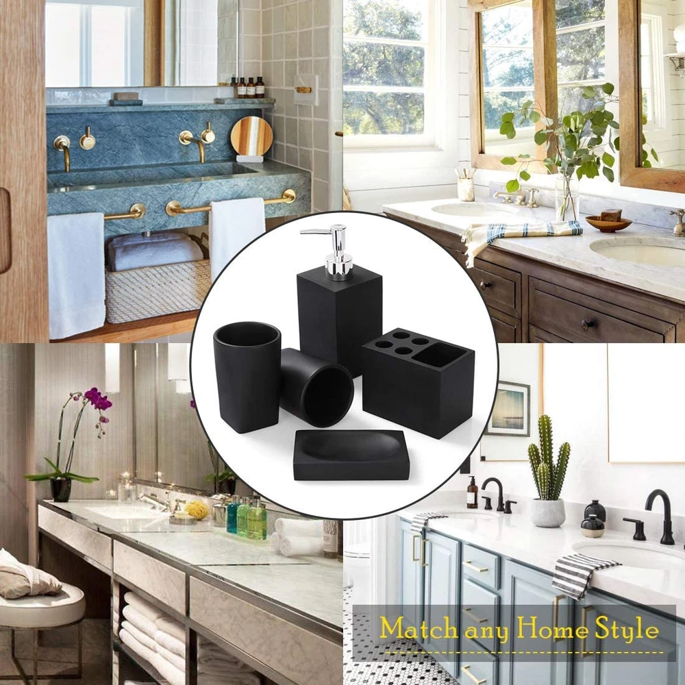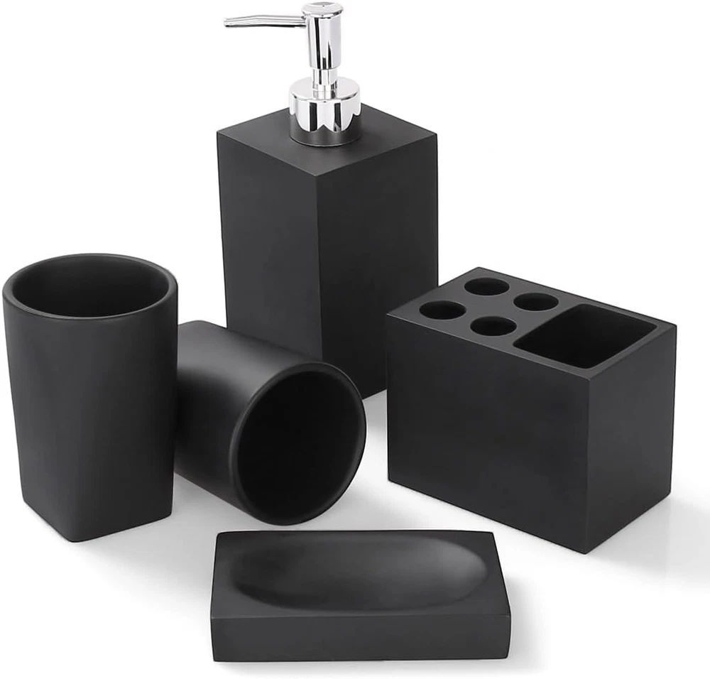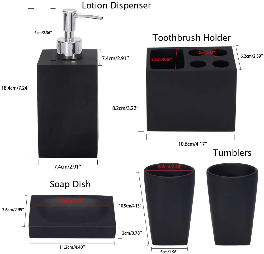 Complete Bathroom Accessories Set -- 5 pieces bathroom soap dispenser set includes a dispenser pump, a toothbrush holder, 2pcs tumbler, a dish. Perfect for storing your toiletries and keep your bathroom counter fully organized neatly. Classic Design -- Unique marble look design. Outfit your new bathroom or upgrade your current bathroom accessories set with its exquisite design, giving your bathroom a touch of elegant style. Premium Materials -- All pieces of bathroom sink set made of high-quality resin, perfect for daily uses, simply rinse and wipe with a soft cloth. Ideal for Gift -- This set is a wonderful housewarming present. Perfectly gift for your friend, family, business partner. The 5 piece kit is both useful and will beautify the home - the best choice! 100% CUSTOMER SERVICE-- We are committed to presenting the best quality materials and satisfaction services to our customers. If you have any issue with the contemporary bathroom accessories set, please contact us, we will be happy to help you Product Description Haturi Complete Bathroom Accessories Set Made with an easy-to-keep material and are perfect to daily use than plastic materials, stable using without going out of fashion. Premium Materials All pieces of bathroom sink set made of high-quality resin Learn More Others Add to Cart Add to Cart Add to Cart Add to Cart Add to Cart Add to Cart Add to Cart Customer Reviews 4.6 out of 5 stars 5,028 4.6 out of 5 stars 5,028 4.6 out of 5 stars 5,028 4.6 out of 5 stars 5,028 4.6 out of 5 stars 5,028 4.6 out of 5 stars 5,028 4.6 out of 5 stars 5,028 Price $25.99 $ 25 . 99 $23.99 $ 23 . 99 $24.99 $ 24 . 99 $25.99 $ 25 . 99 $23.99 $ 23 . 99 $27.99 $ 27 . 99 $19.99 $ 19 . 99 Storage Item Soap, toothbrush ,loption Soap, toothbrush ,loption Soap, toothbrush ,loption Soap, toothbrush ,loption Soap, toothbrush ,loption Soap, toothbrush ,loption Soap, toothbrush ,loption Quantity 5 Pack 4 Pack 4 Pack 4 Pack 4 Pack 4 Pack 4 Pack Material Resin Glass Glass Glass Glass Resin Glass Gift Choices ✔ ✔ ✔ ✔ ✔ ✔ ✔ Usage Scenarios Bathroom, Living Room,Bedroom Bathroom, Living Room,Bedroom Bathroom, Living Room,Bedroom Bathroom, Living Room,Bedroom Bathroom, Living Room,Bedroom Bathroom, Living Room,Bedroom Bathroom, Living Room,Bedroom