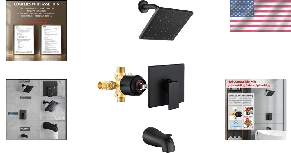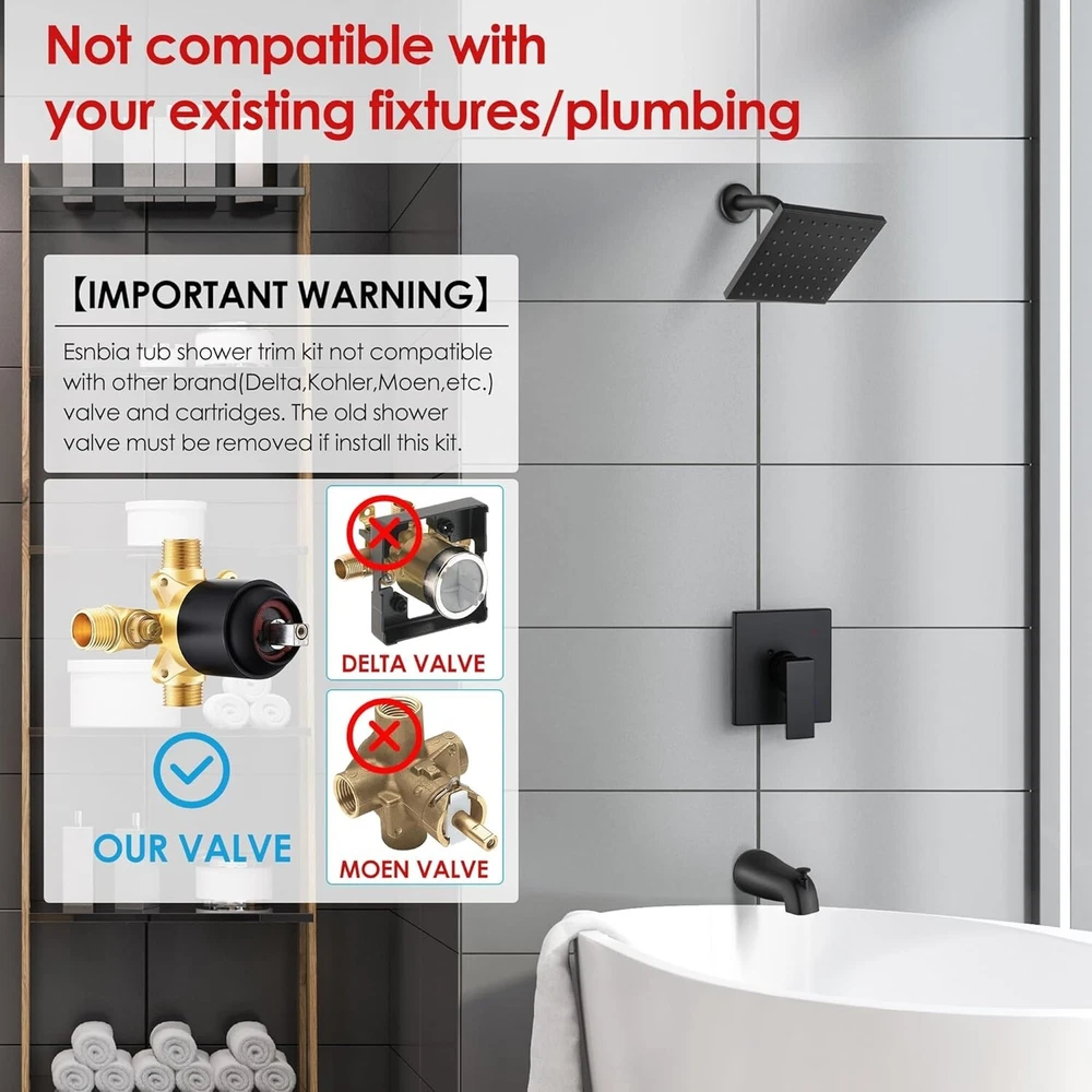 Matte Black 6-Inch Rain Shower Head and Tub Spout Faucet Set for Luxurious Baths ‹ › ‹ › ‹ › ‹ › ‹ › ‹ › ‹ › ‹ › ‹ › ‹ › Matte Black 6-Inch Rain Shower Head and Tub Spout Faucet Set Transform your bathing experience into a luxurious retreat with our exquisite Matte Black 6-Inch Rain Shower Head and Tub Spout Faucet Set. Immerse yourself in a waterfall-like shower experience while enhancing the aesthetic of your bathroom with this elegant set. Key Features: Pressure Balance Valve: Our CUPC certified pressure balance valve ensures compliance with leading safety standards and regulations for worry-free installation. High Pressure Rain Shower Head: Indulge in powerful, consistent shower performance, even under low water pressure, delivering you a revitalizing, high-pressure experience. Anti-Corrosion Finish: Multi-layer Matte Black finish resists daily scratches, corrosion, and tarnishing, ensuring your shower remains looking pristine even in the humid atmosphere of the bathroom. Comprehensive Package: This collection includes everything you need: shower valve with valve trim, a stunning 6-inch rain shower head, a beautifully designed 6” shower arm, and a tub spout with diverter for seamless use. Sleek Design: The elegantly curved handles and modern spout combine function and style, perfectly complementing any bathroom décor. Installation Note: Important Warning: This set is not compatible with existing fixtures or plumbing. The old shower valve must be removed to install this kit, ensuring optimal performance and safety. Why Choose Our Rain Shower Head and Tub Spout Set? Don’t merely bathe; elevate your entire bathing experience with a shower system designed for luxury and performance. Our Matte Black Shower Head and Tub Spout Set not only enhances the aesthetics of your bathroom but also delivers the high-pressure experience you deserve. Embrace modern elegance and indulge in daily luxury. Upgrade your bathroom sanctuary today with our premium faucet set. Your luxurious bath awaits! Shipping Free & Fast Shipping - We offer free shipping to most of the USA with a normal delivery time of 3-7 days. However, due to the current situation, additional delivery time (up to 3 weeks) may be required for some items. Alternative Carriers - We may use alternative carriers (e.g. USPS, FedEx, UPS, etc.) to ensure your package arrives safely and on time. Due to the use of multiple carriers, we are unable to provide a tracking number automatically. Handling Time - Orders are processed and shipped within 1-2 business days of receiving cleared payment. Shipping Restrictions - Shipping to Alaska, Hawaii, Puerto Rico, Guam, and other US territories may incur shipping charges or delivery restrictions. Please contact us before ordering, or your order can be refunded/cancelled. State Restrictions - There may be restrictions based on your state of purchase. For example, certain items may not be shipped to California due to state regulations. Contact for Tracking Updates - If you require tracking updates or have any concerns about the delivery of your order, please feel free to contact us, and we will be happy to assist you. Return 30-Day Hassle-Free Returns - We want you to be completely satisfied with your purchase. If you are not, you can return the item within 30 days of receiving it for a full refund or exchange. Easy Return Process - To start a return, simply contact us and we will provide you with a prepaid return shipping label and detailed instructions. Restocking Fee - There are no restocking fees for returns. However, the buyer is responsible for return shipping costs if the return is not due to a seller's error. Refund Processing Time - Refunds will be processed within 5 business days of receiving the returned item in its original condition. Payment We accept all major credit cards, PayPal, and Apple Pay for your convenience. Your payment information is secure and encrypted to ensure a safe and seamless transaction. Please complete your payment within 3 days of purchase to avoid any delays in shipping. Feedback Your feedback is extremely important to us. We strive to provide the best products and customer service possible. If you are satisfied with your purchase, please take a moment to leave us a positive review. If you have any concerns or issues with your order, please contact us before leaving negative feedback. We are committed to resolving any problems and ensuring your satisfaction. Contact Us If you have any questions or concerns, please feel free to reach out to our customer support team. You can contact us through the eBay messaging system. We are available Monday to Friday, 9:00 am to 5:00 pm EST, and we will do our best to respond to your inquiry within 24 hours. Buy it now and enjoy a pleasant shopping experience! UPC: Not Set Item Weight: 2.39 kg Flow Rate: 1.8 gallons per minute Unit Quantity: 1 Suitable For: Shower,Bathroom Material: Copper,Stainless Steel Features: Anti-Corrosion,Pressure Balance Valve Labels & Certifications: Not Set Room: Bathroom Items Included: Shower Valve with Valve Trim,Single-Handle Tub and Trim Kit,6-Inch Rain Head,6 Inch Shower Arm,Tub Spout with Diverter Water Feed: Not Set Brand: Unbranded Type: Complete Shower System Number of Faucet Handles: 1 Number of Faucet Holes: Not Set Color: Matte Black Finish: Matte Handle Type: Single Handle Shower Head Shape: Square Installation: Wall Mounted Item Width: Not Set Item Length: Not Set Item Height: Not Set Model: Not Set Faucet Hole Spacing: Not Set Faucet Mounting Type: Embedded Manufacturer Warranty: Not Set Minimum Pressure: Not Set Power Rating: Not Set Shower Head Diameter: 6 inches MPN: Not Set Manufacturer: Not Set Number of Spray Patterns: Not Set Temperature Control: Not Set Shower Head Type: Rain Shower Product Line: Not Set Style: Modern Spray Patterns: Not Set Country/Region of Manufacture: Not Set Unit Type: Not Set Shower Head Included: Not Set Assembly Requ
